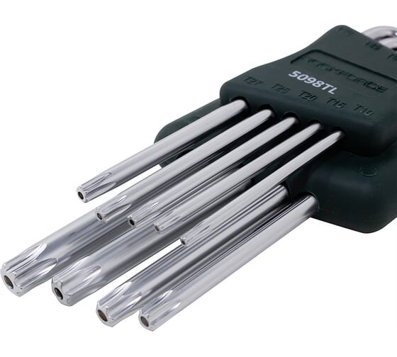 Набор ключей Г-образных TORX длинных 9пр.(Т10Н, Т15Н, Т20Н, Т25Н,Т27Н, Т30Н, Т40Т, Т45Н,Т50Н с отверстием)в пластиковом держателе Rock FORCE RF-5098TL