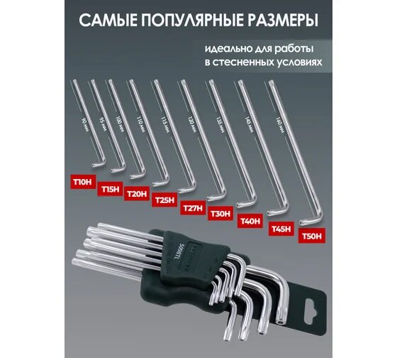 | Ключи имбусовые подробно | T10, T15, T20, T25, T27, T30, T40, T45, T50 |