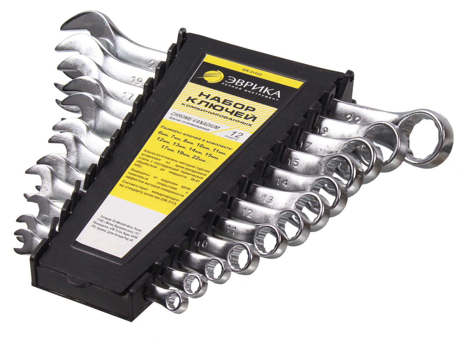 Набор ключей комбинированных 6-22мм сатинированных холдер 12 предметов эврика