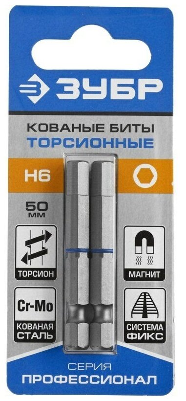 Кованые торсионные биты ЗУБР Профессионал HEX3 50 мм 2 шт. 26017-3-50-2