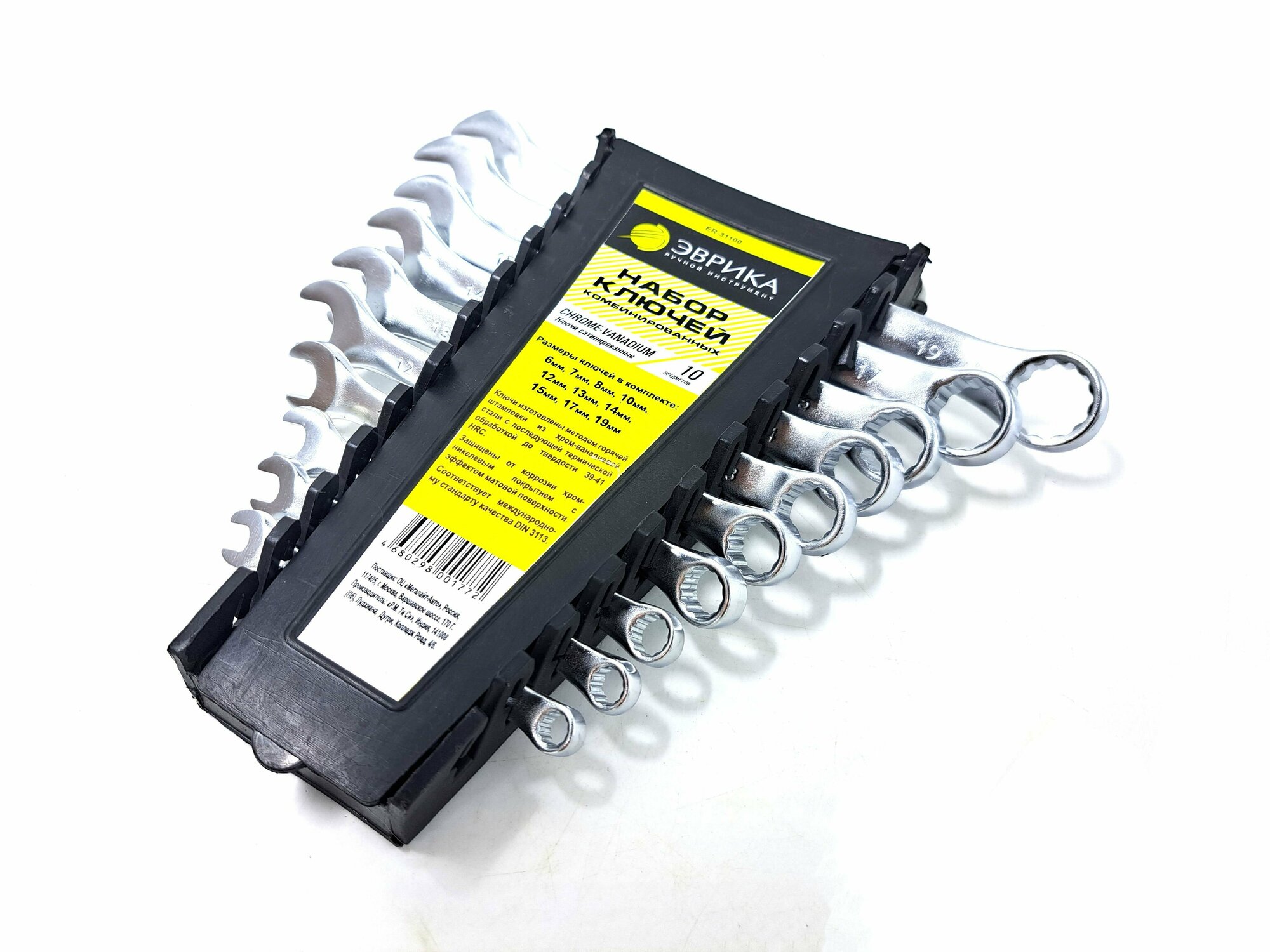 Набор ключей комбинированных 6-19мм 10 предметов в холдере сатинированные, эврика ER31100 (1 шт.)