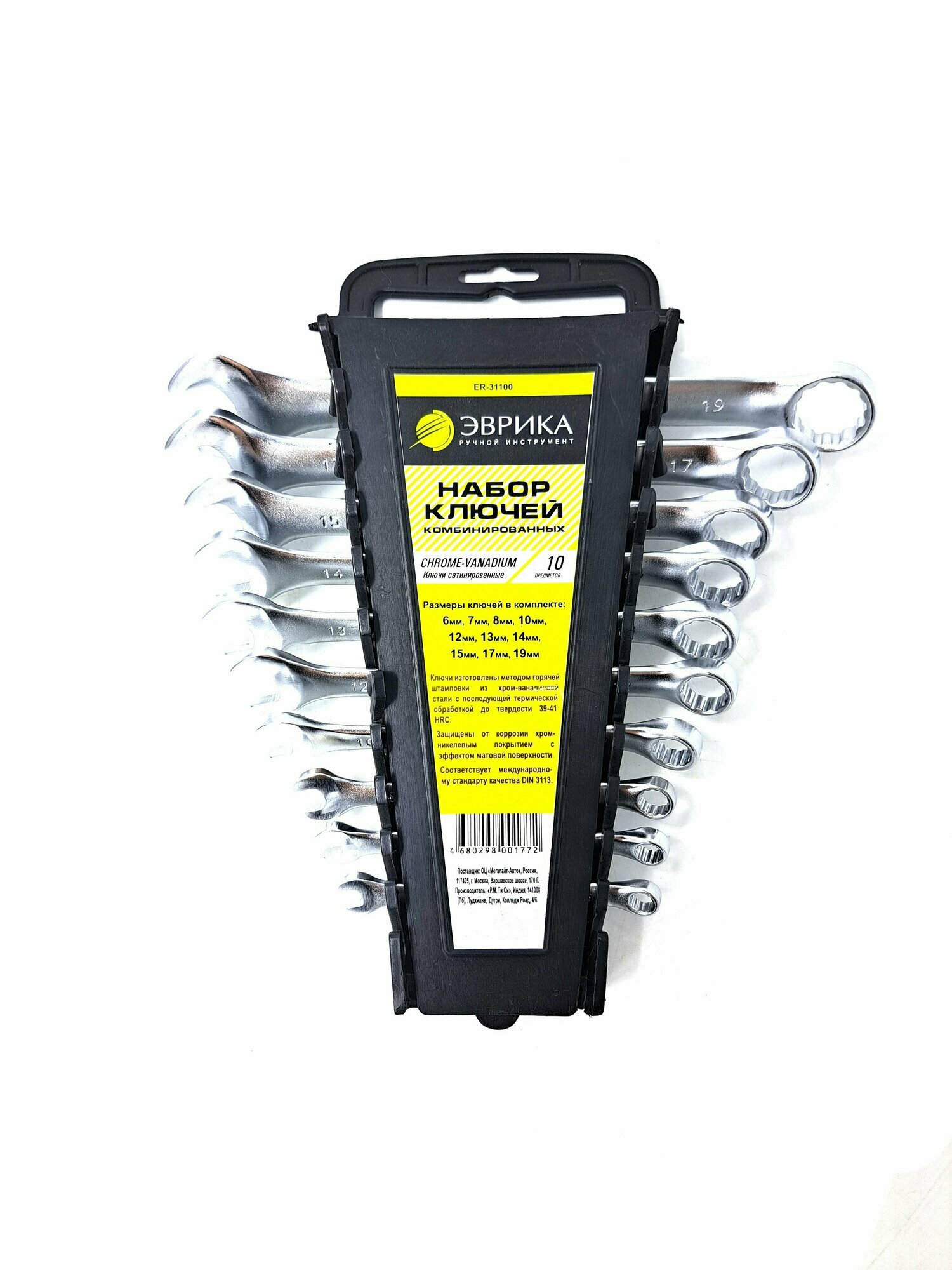 ER31100 эврика Набор ключей комбинированных 6-19мм 10 предметов в холдере сатинированные эврика