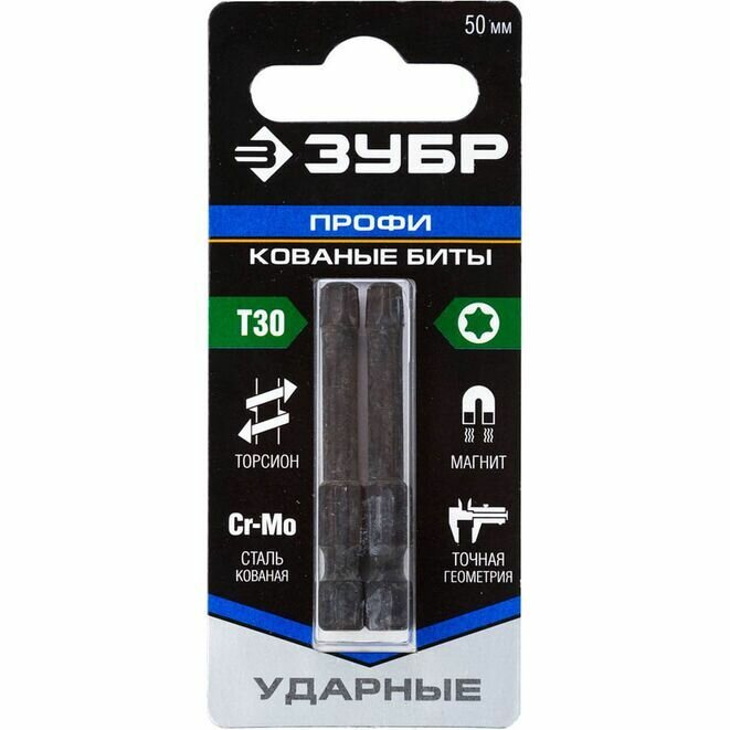 Купить Кованые биты ЗУБР Профессионал Т30 50 мм 2 шт. 26025-30-50-S2