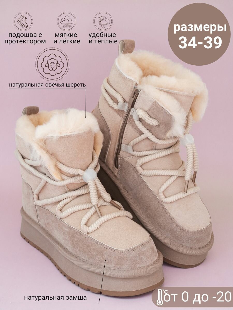 Угги Тотошка Для подростков, размер 36, бежевый/розовый интересное: