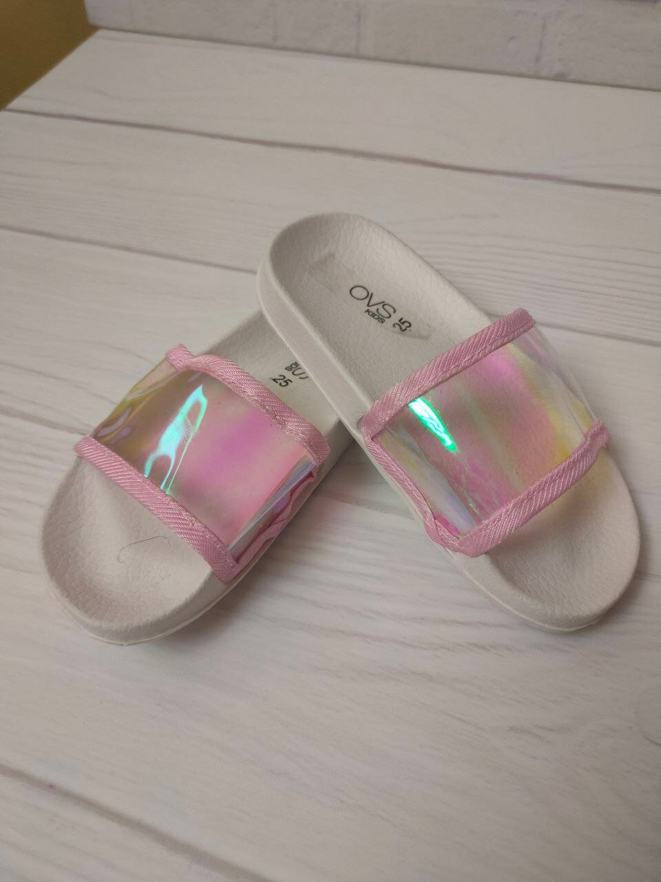 Шлёпанцы OVS, размер 25, белый/розовый интересное: