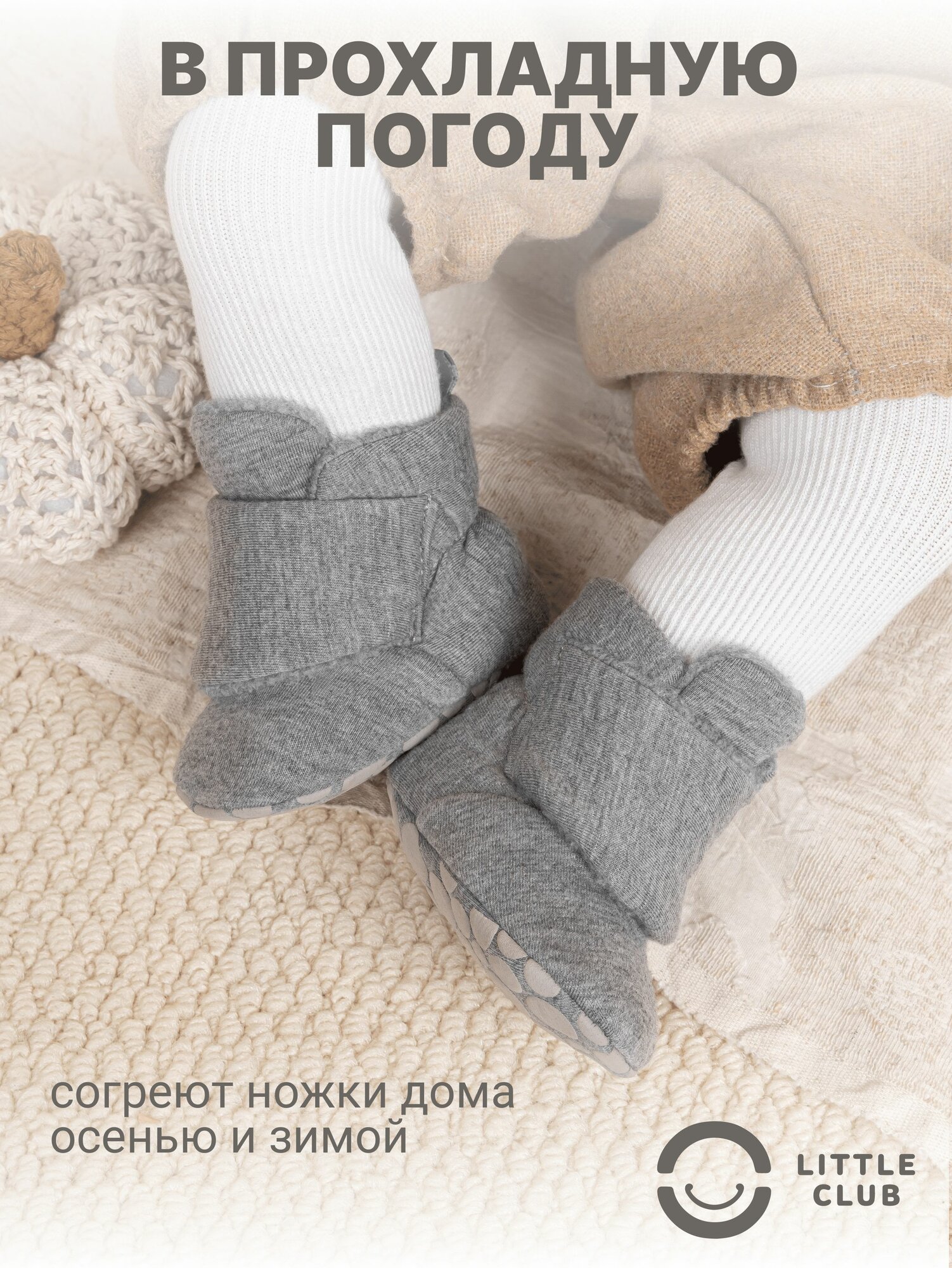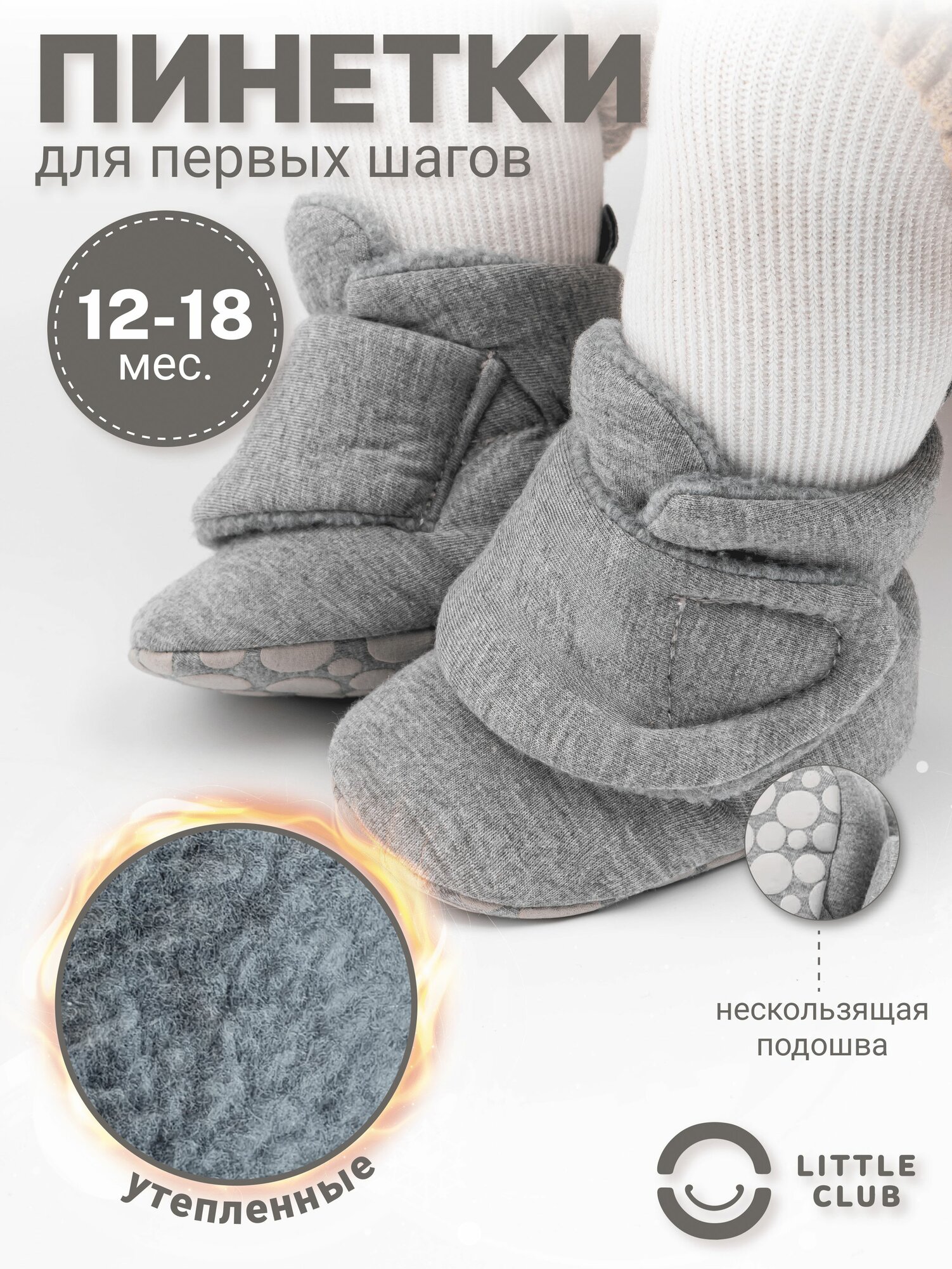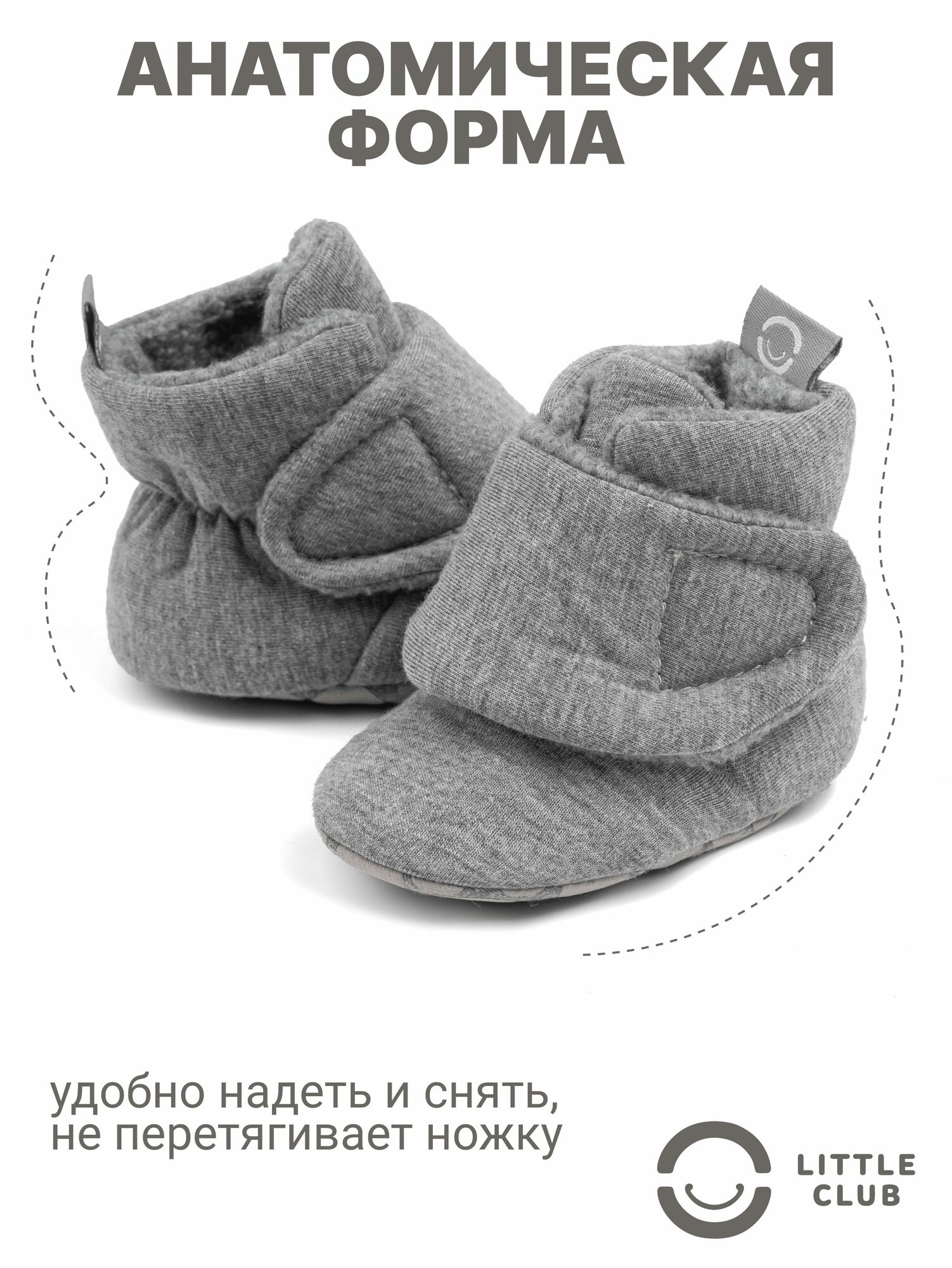 Пинетки LITTLE CLUB для новорожденных, размер 12 размер (6-12 месяцев), светло-серый