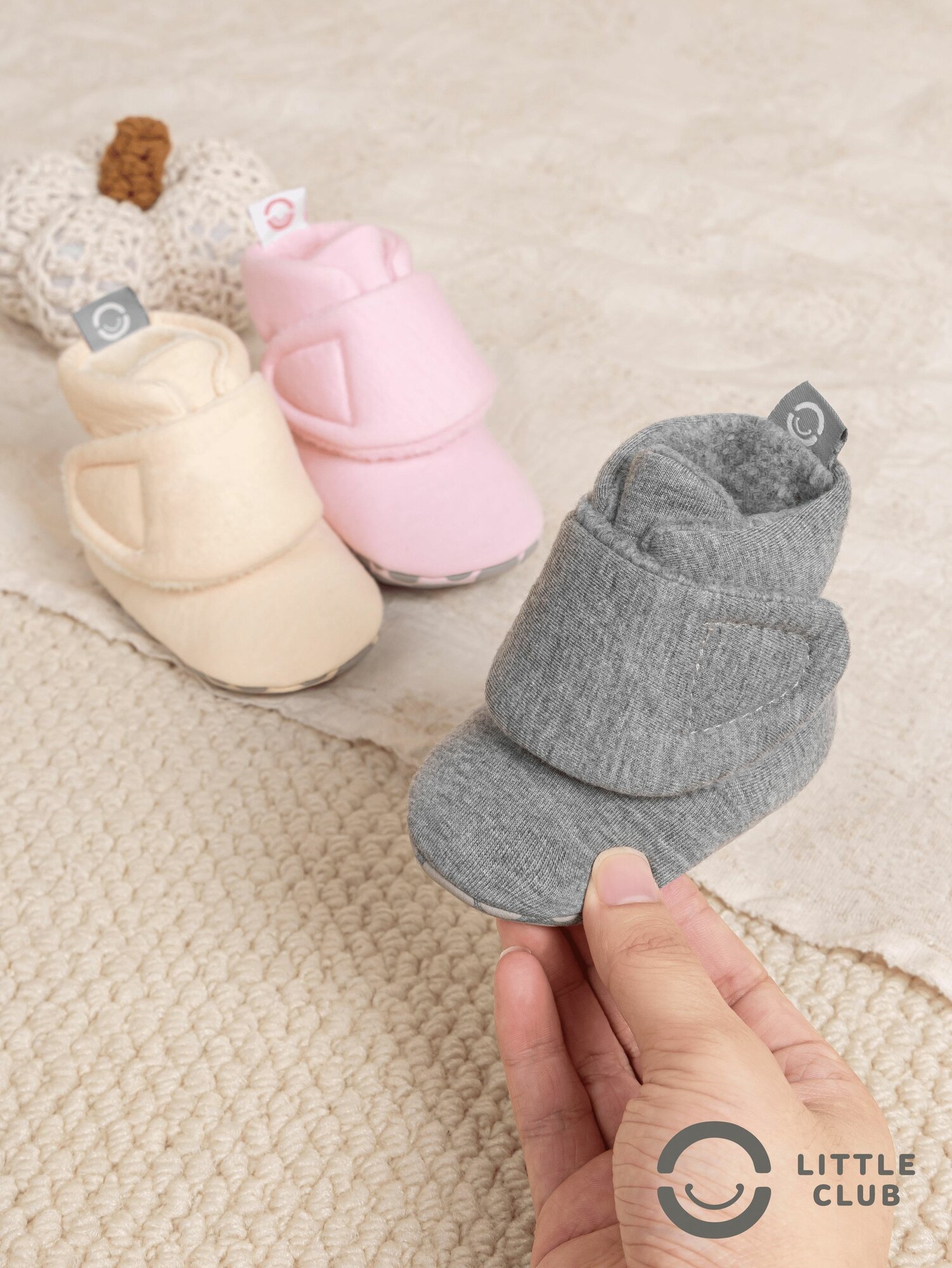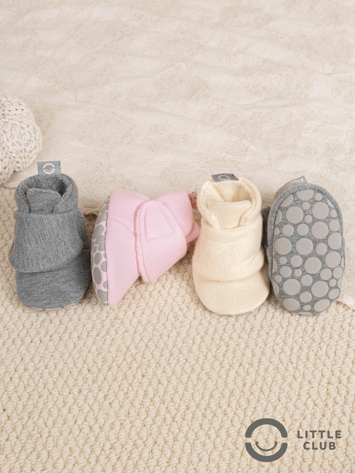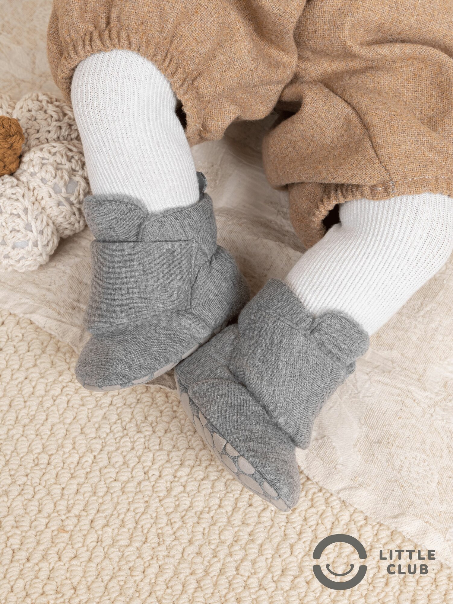 Пинетки LITTLE CLUB для новорожденных, размер 12 размер (6-12 месяцев), светло-серый