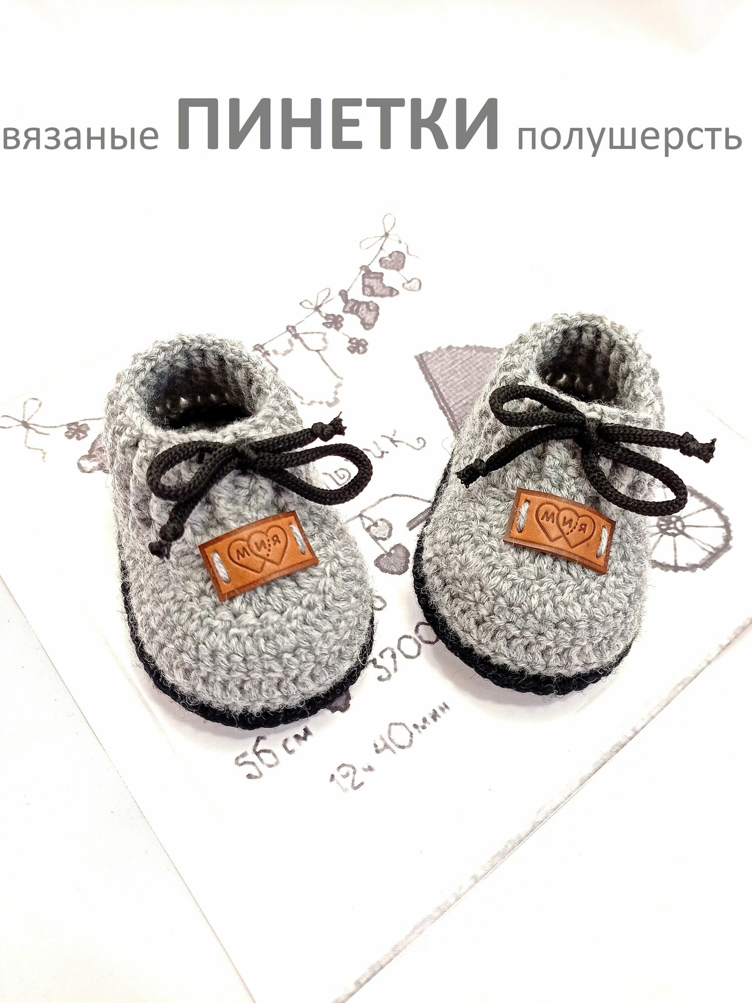 Пинетки, размер 10см (3мес), серый меланж интересное: