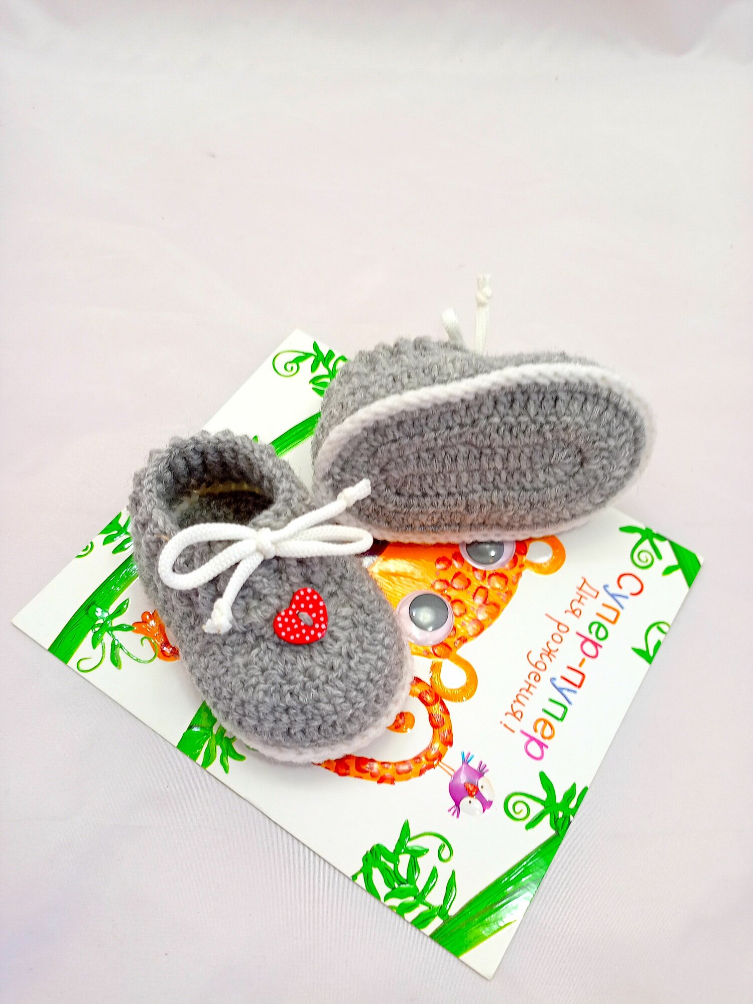 Пинетки, размер 8см (0-1мес), серый меланж интересное: