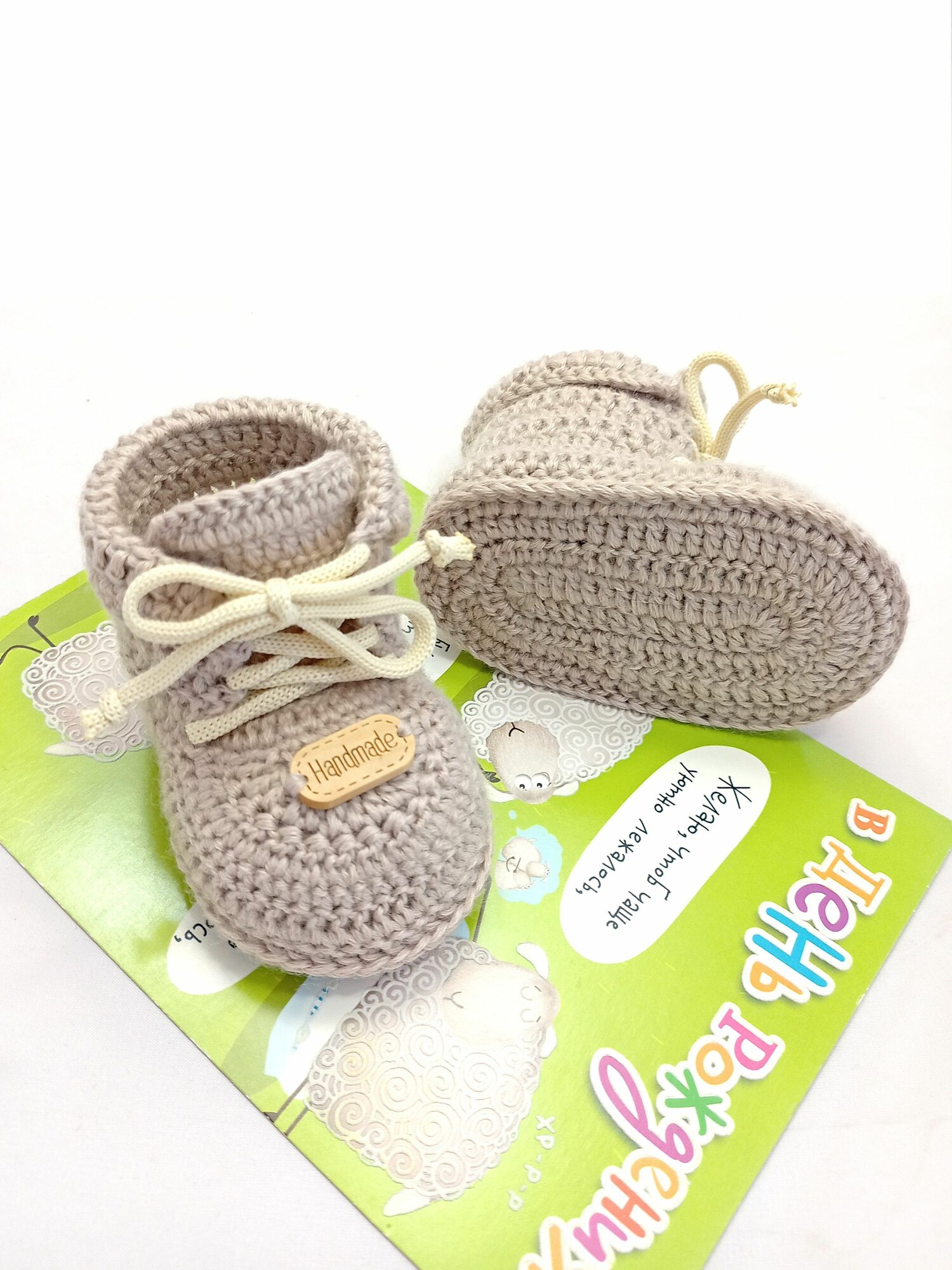 Пинетки, размер 10,5см (3-4мес), бежевый интересное: