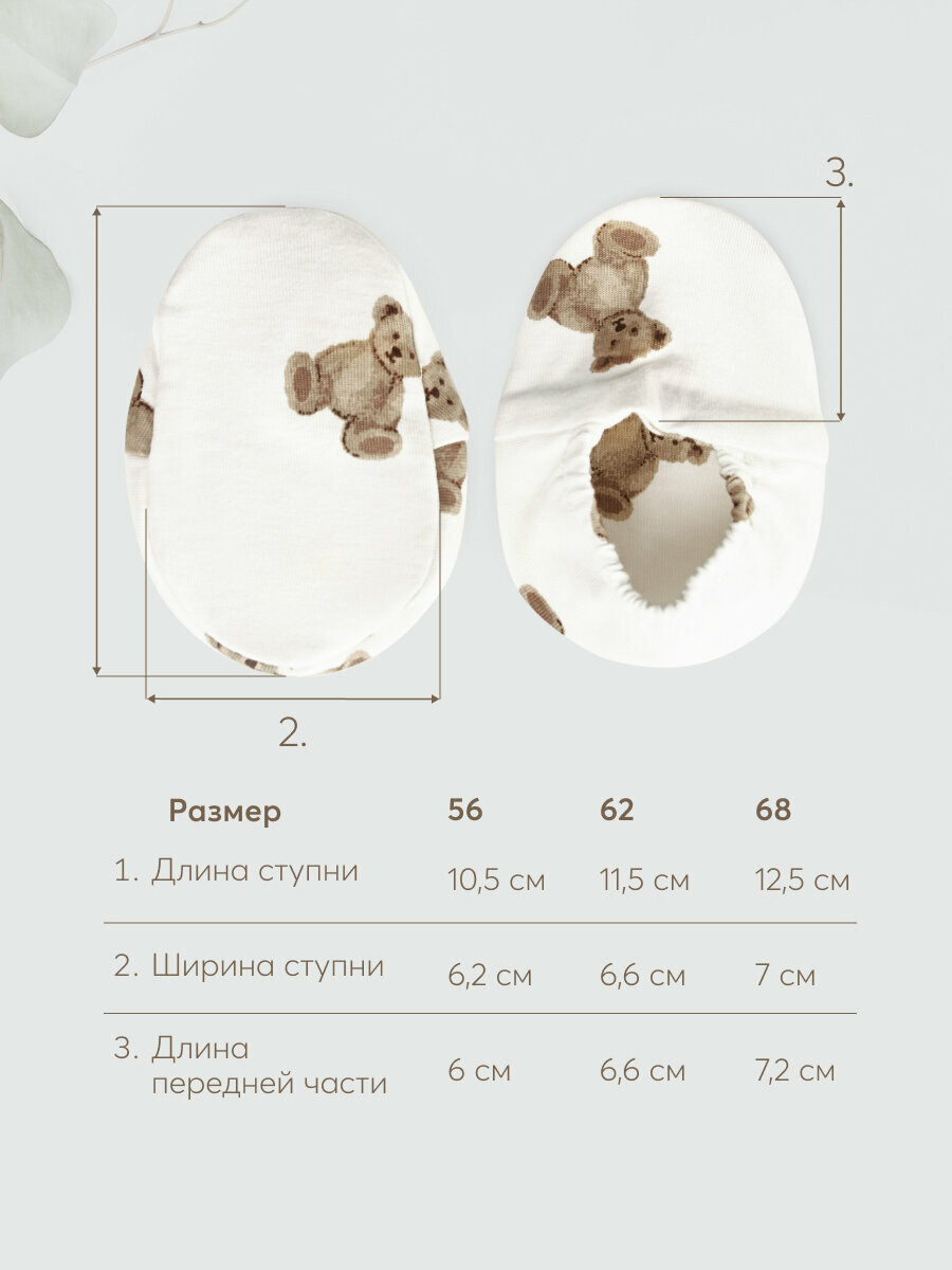 Пинетки Happy Baby Happy Baby Newborn, размер 62, белый, коричневый