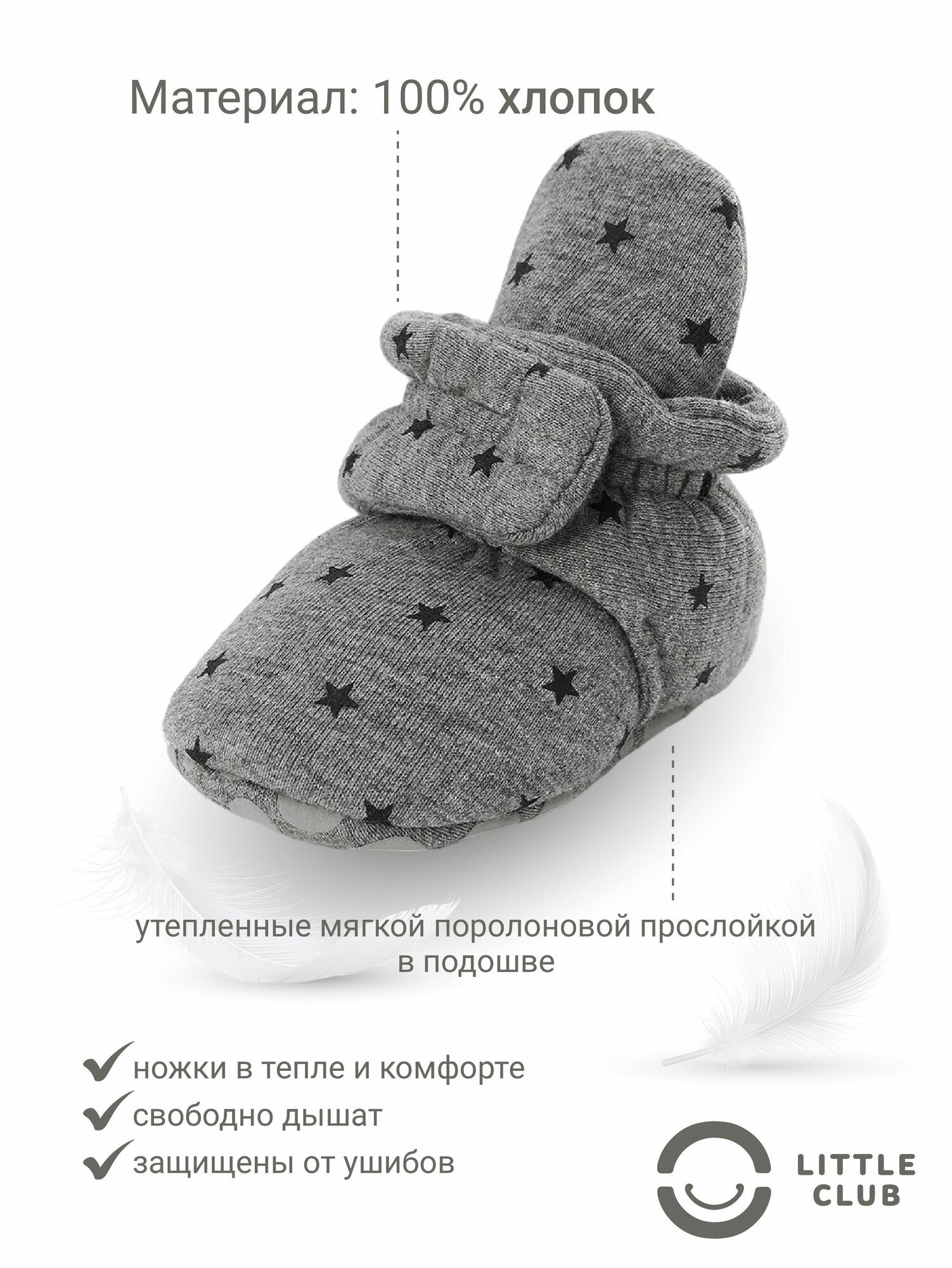 Купить Пинетки LITTLE CLUB для новорожденных, размер 13 размер (12-18 месяцев), серый со звёздочками