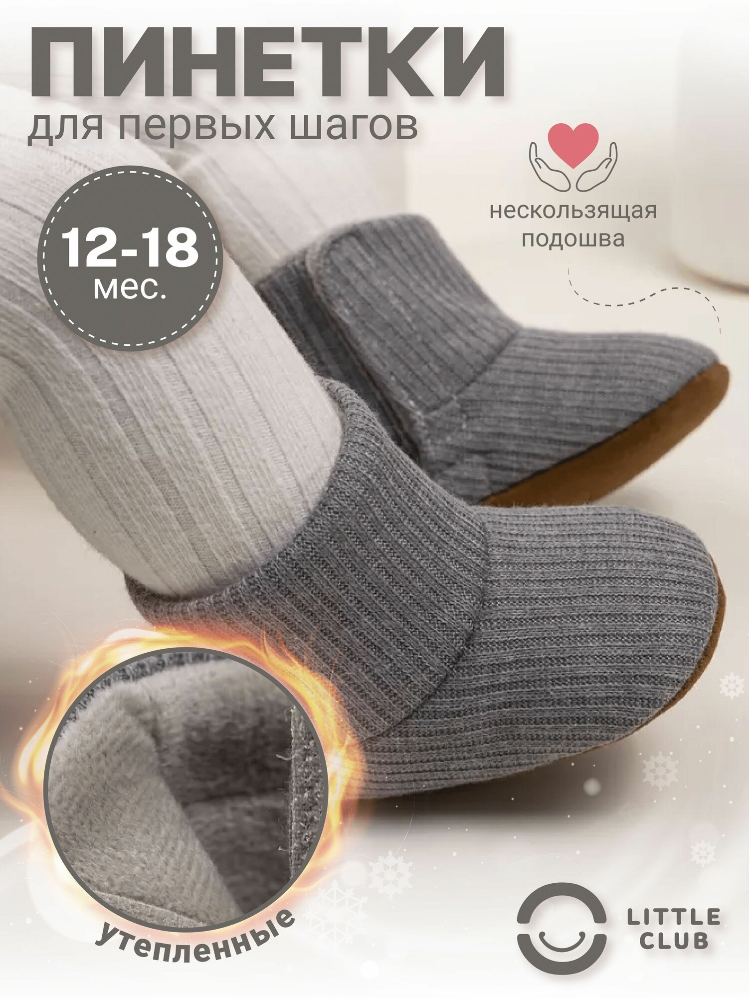 Пинетки LITTLE CLUB для новорожденных, размер 13 размер (12-18 месяцев), серый интересное: