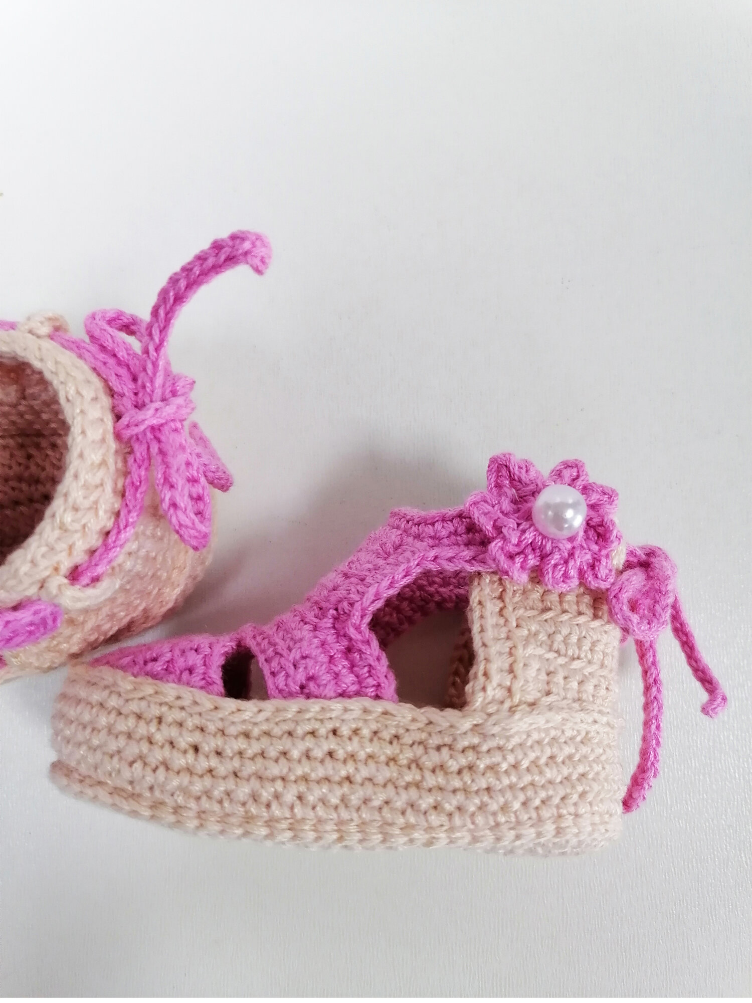Пинетки, размер 9 см по подошве, розовый/бежевый интересное: