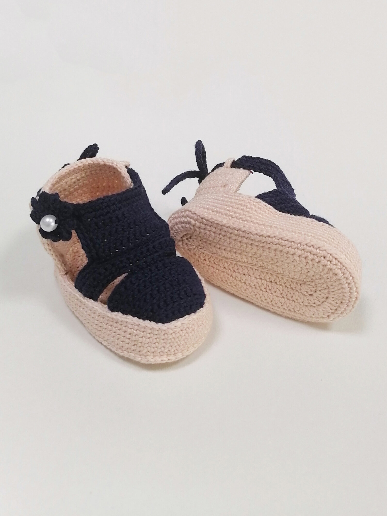 Купить Пинетки, размер 11 см по подошве, синий, бежевый