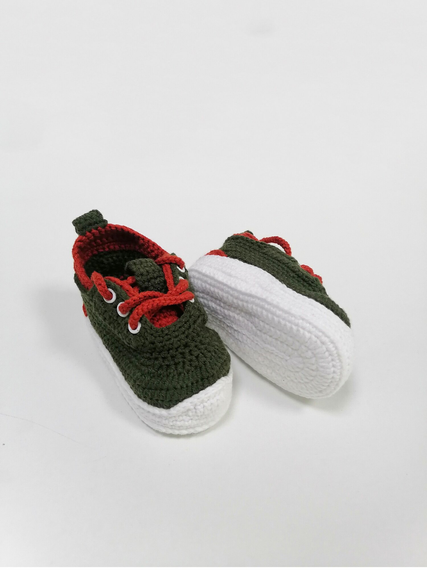Пинетки, размер 10 см по подошве, зеленый, белый