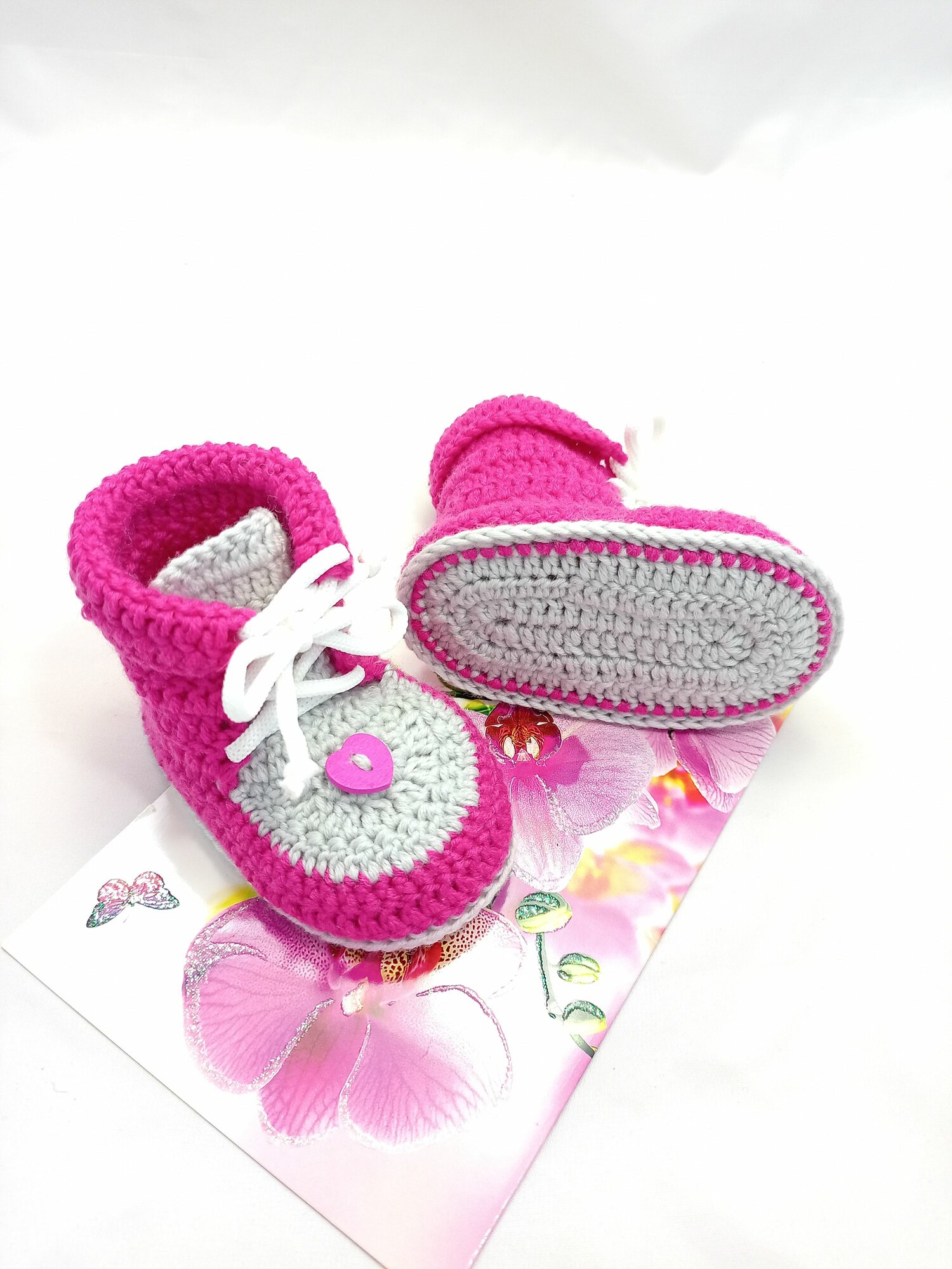 Купить Пинетки, размер 8,5см (0-1мес), серый, фуксия
