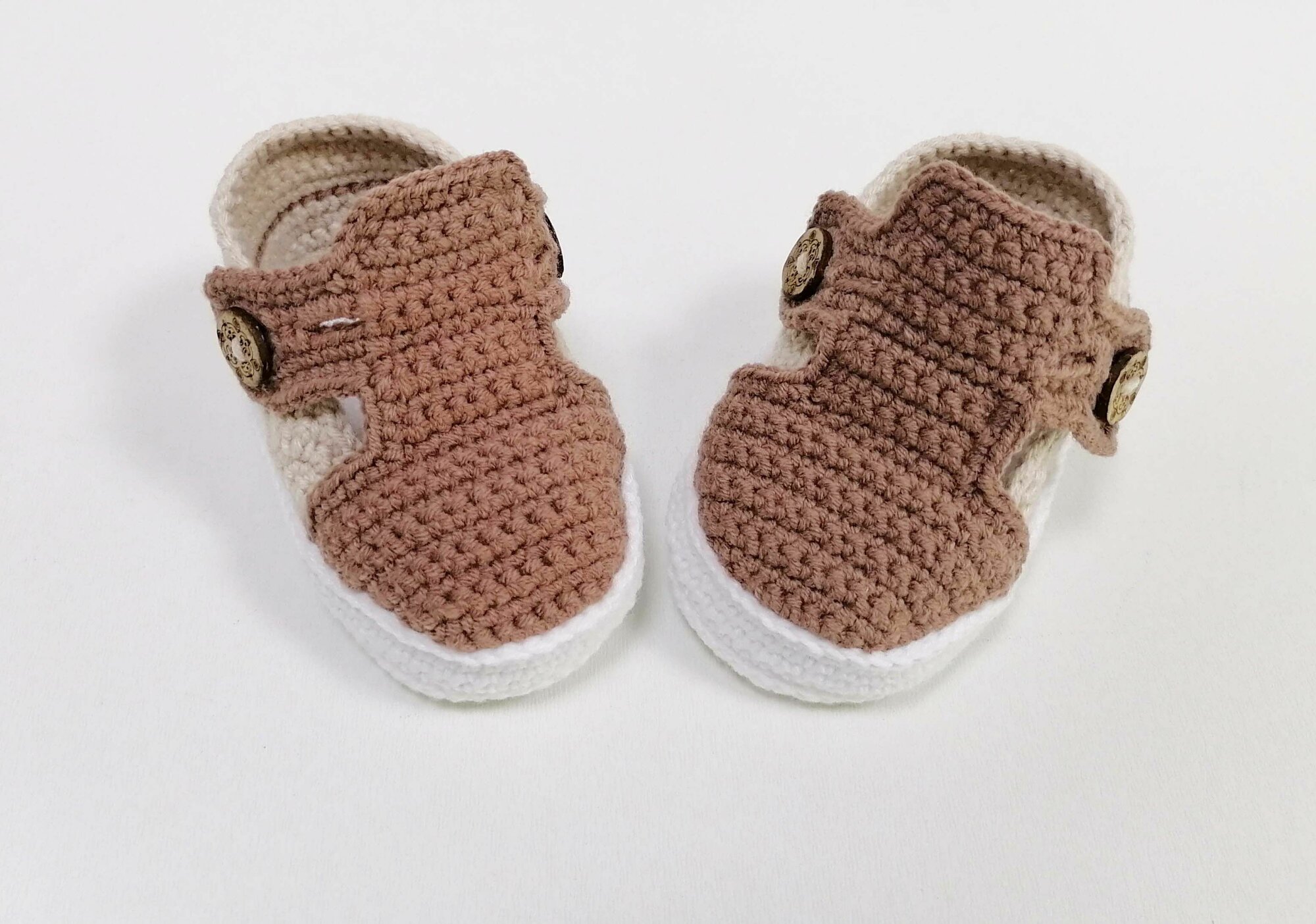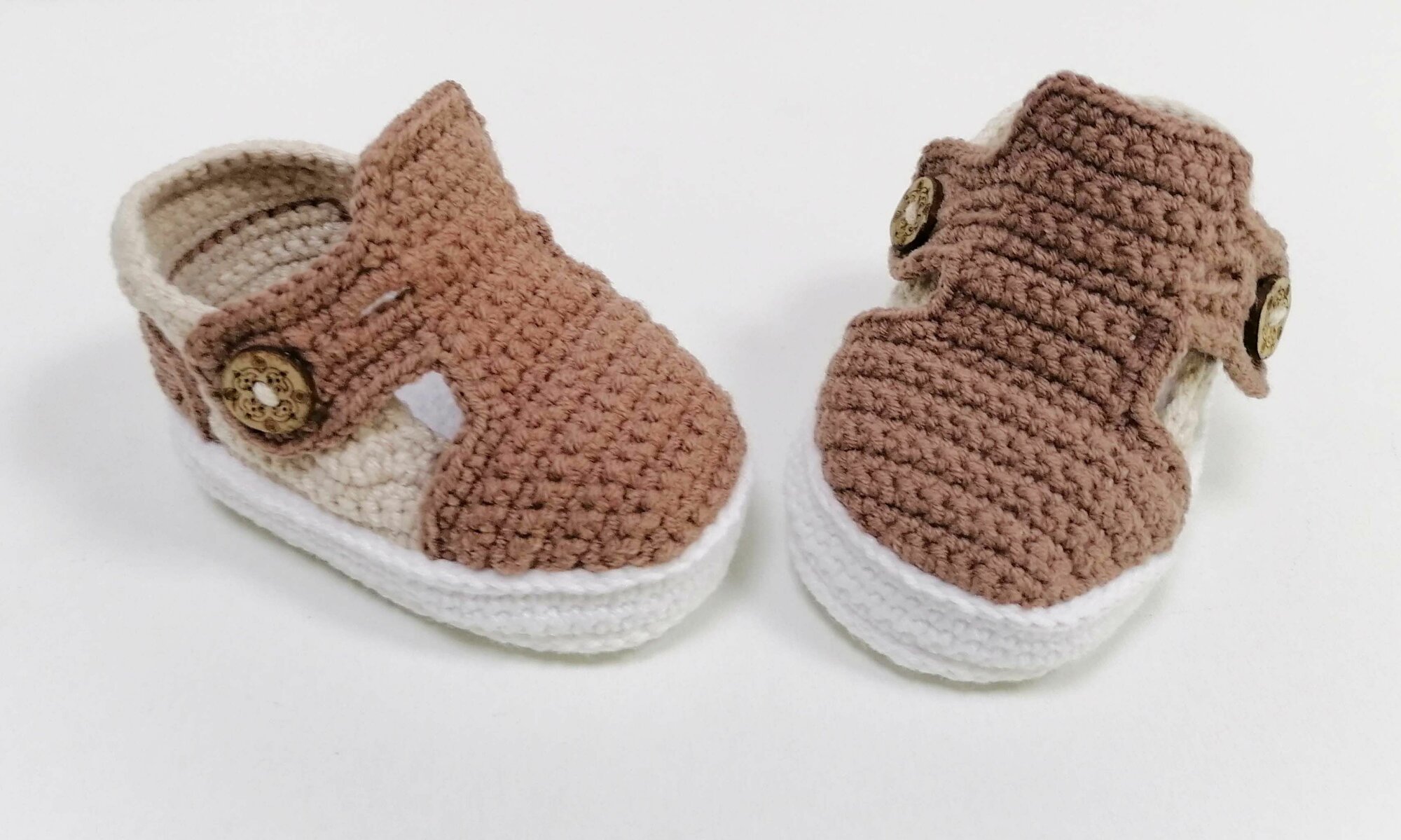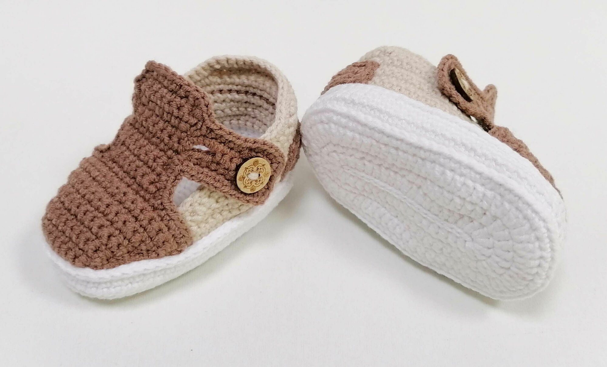 Пинетки, размер 11 см по подошве, белый, коричневый, бежевый