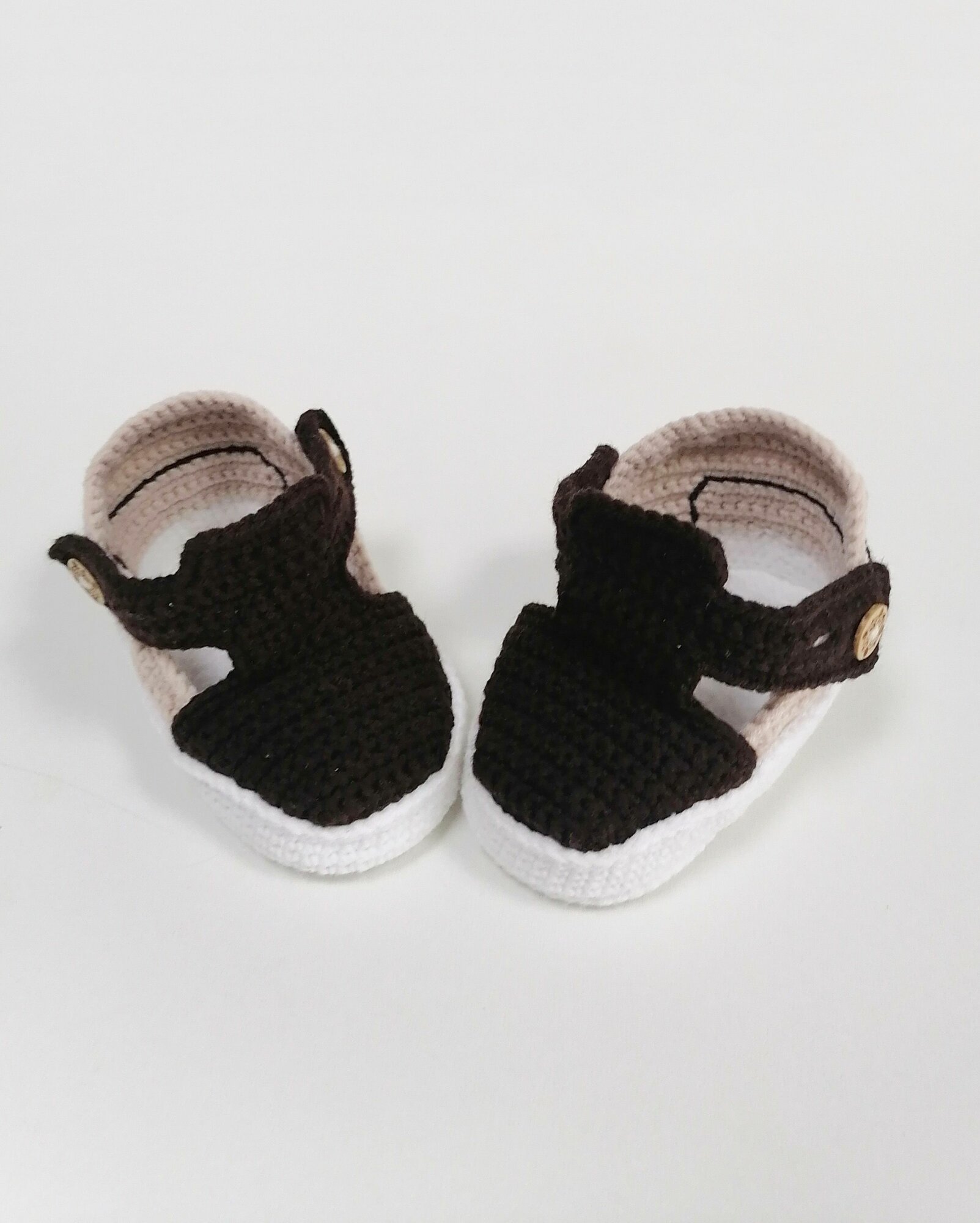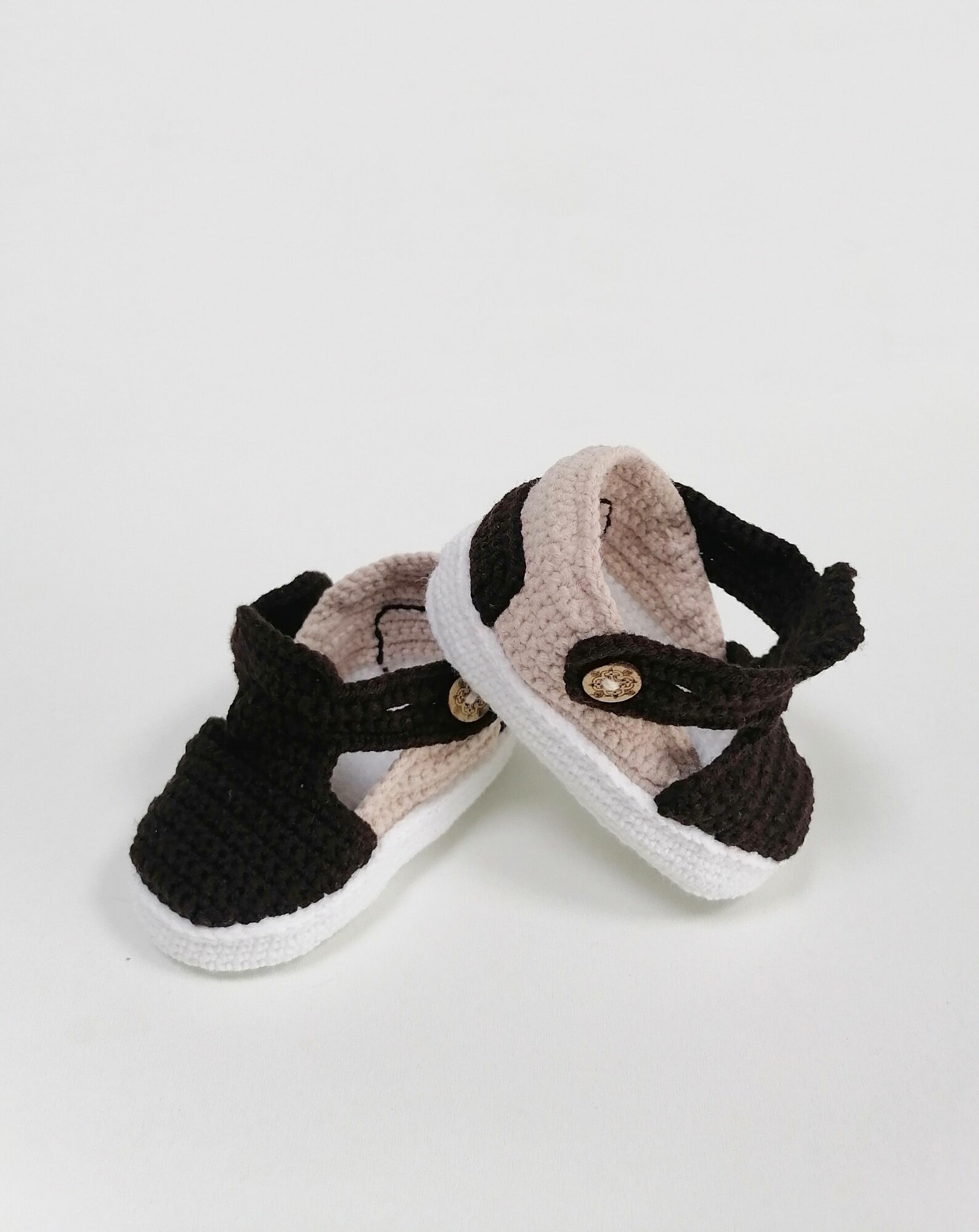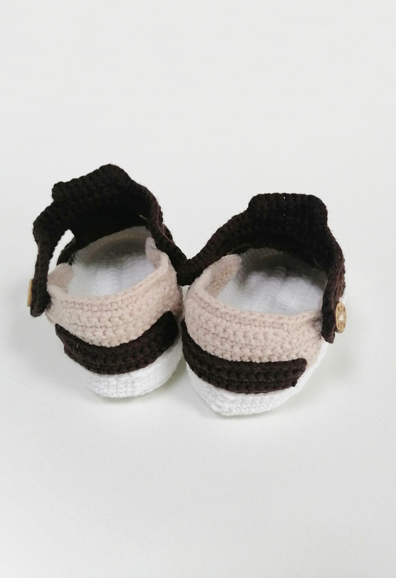 Пинетки, размер 9 см по подошве, белый, коричневый, бежевый