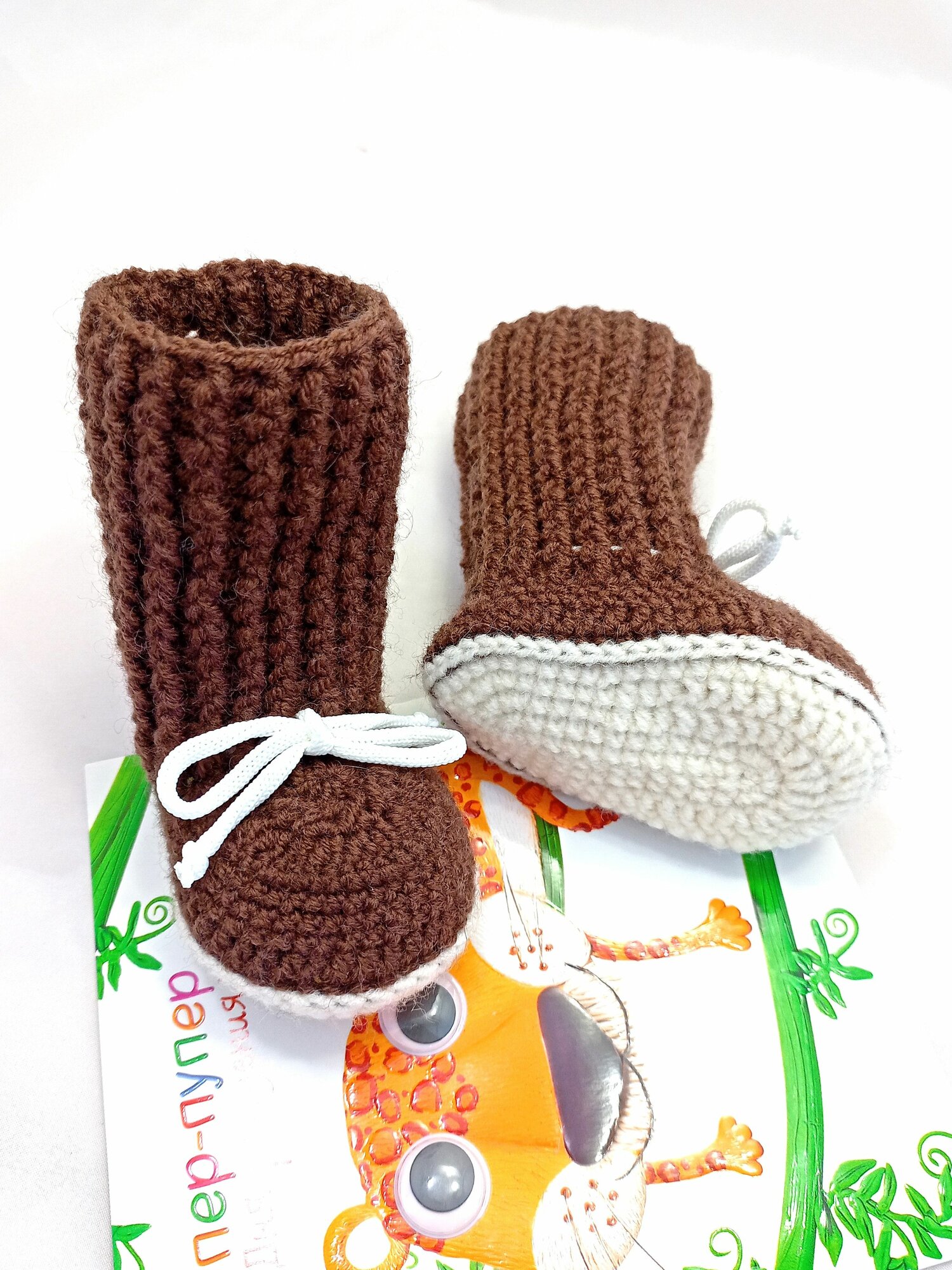 Пинетки, размер 8см (0-1мес), коричневый интересное:
