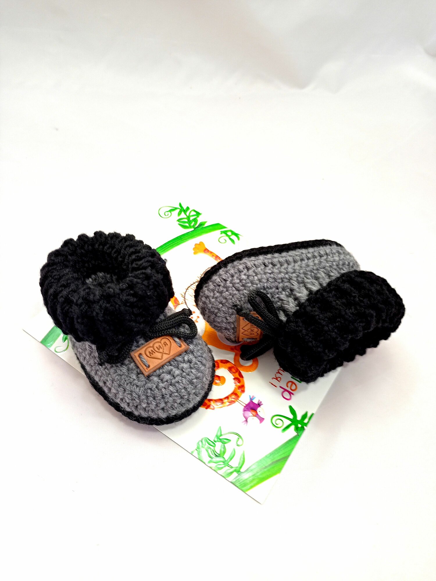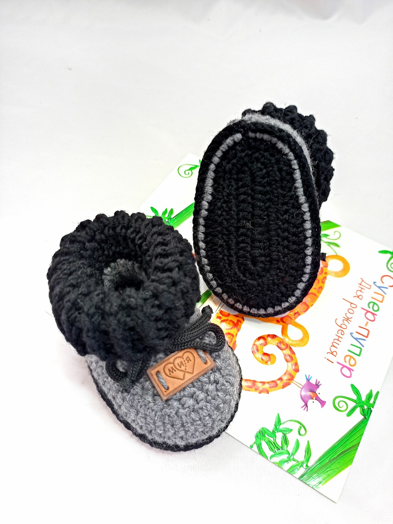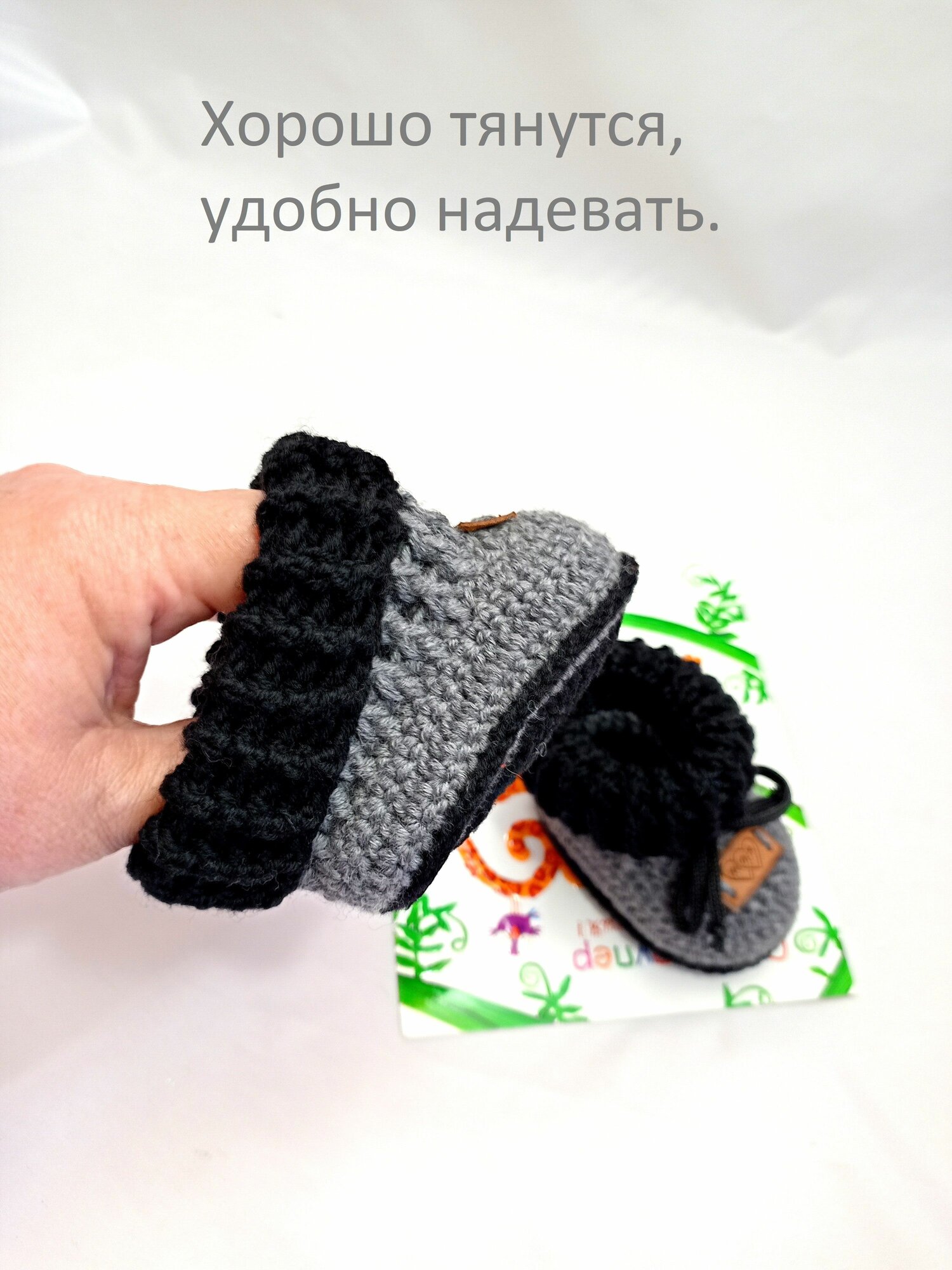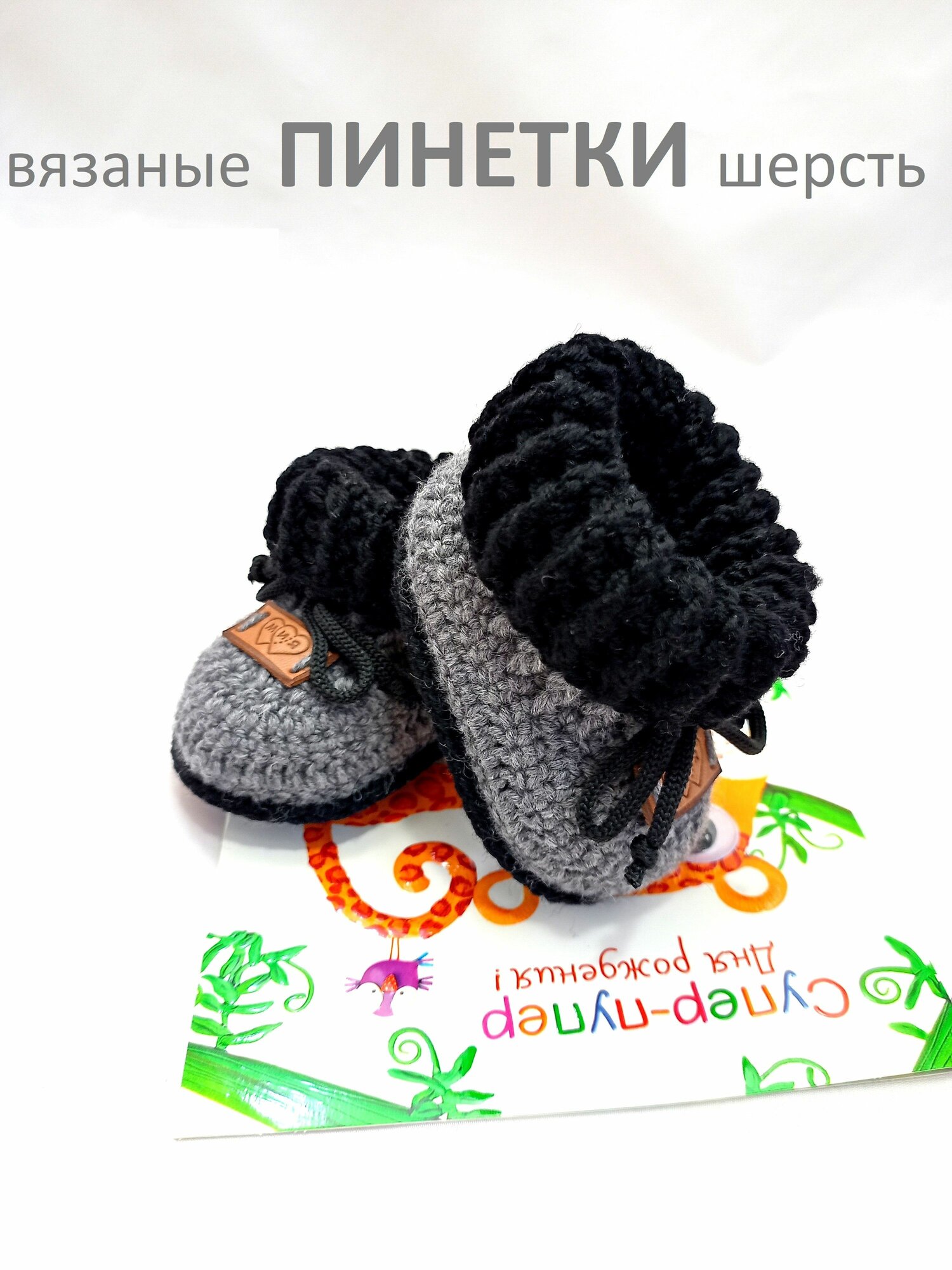 Пинетки, размер 8см (0-1мес), серый, черный интересное: