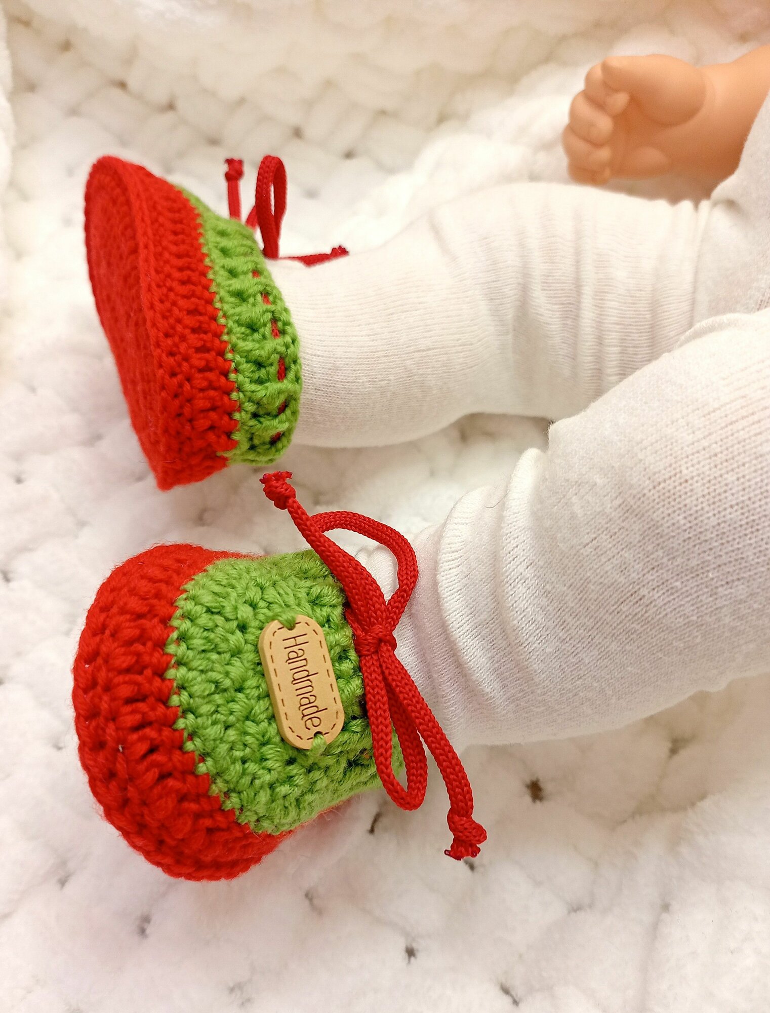 Пинетки, размер 11см (5-6 мес), зеленый, красный