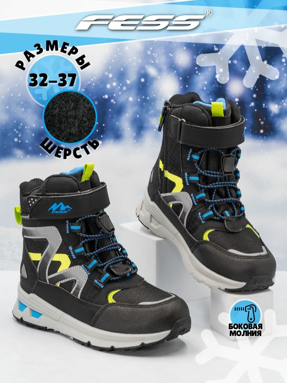 Ботинки FESS, размер 32, черный