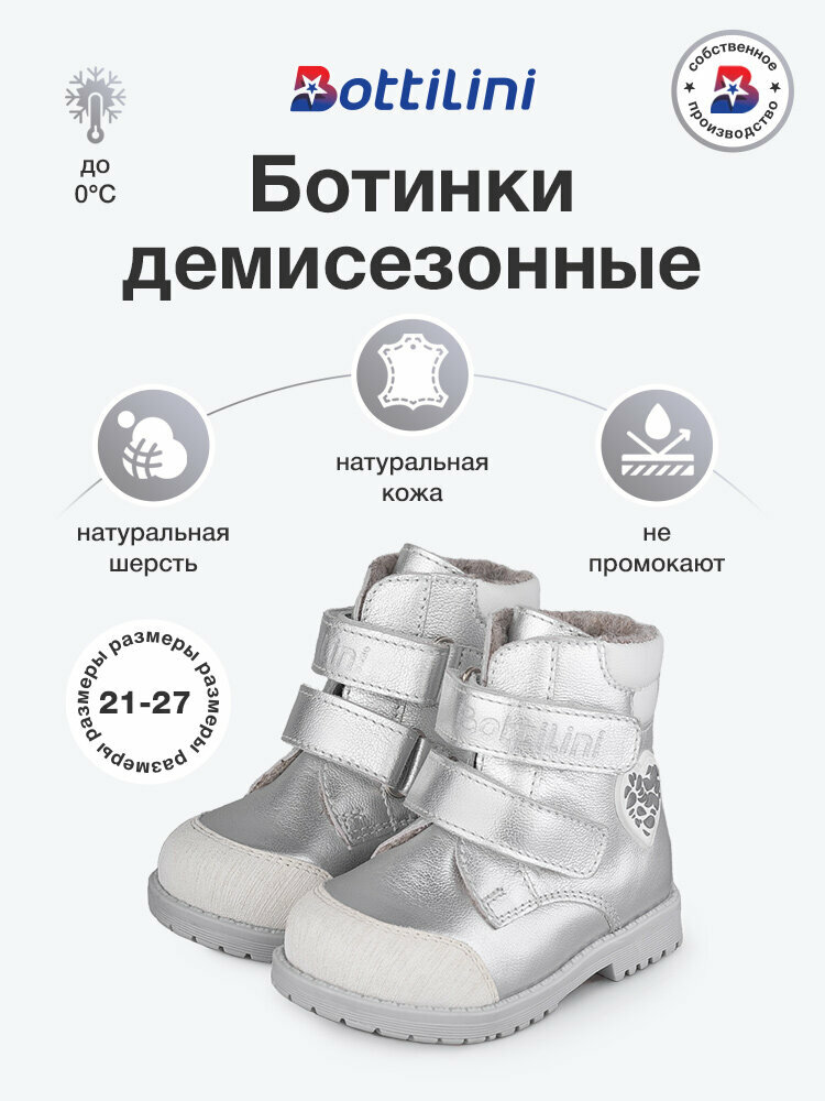 Ботинки Bottilini, размер 26, серебристый