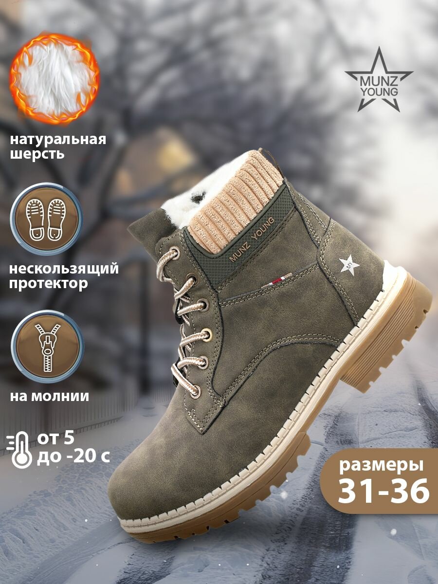 Ботинки MUNZ YOUNG, размер 33, хаки интересное: