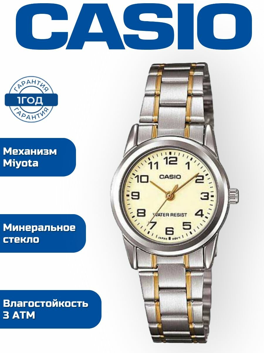 Наручные часы CASIO Standard LTP-V001SG-9B, серебряный, желтый