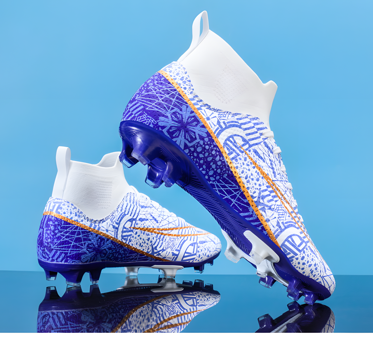 Бутсы, размер 34, белый/голубой
