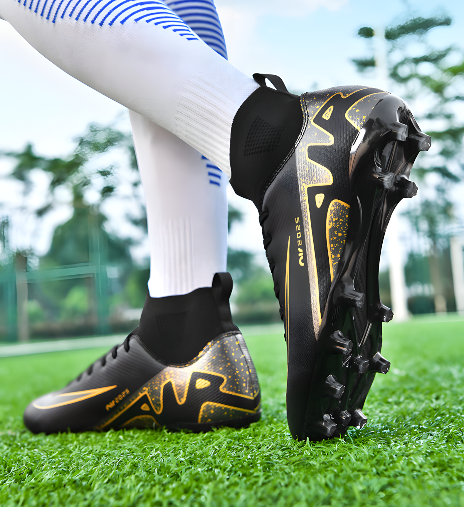 Бутсы, размер 34, черный/золотой