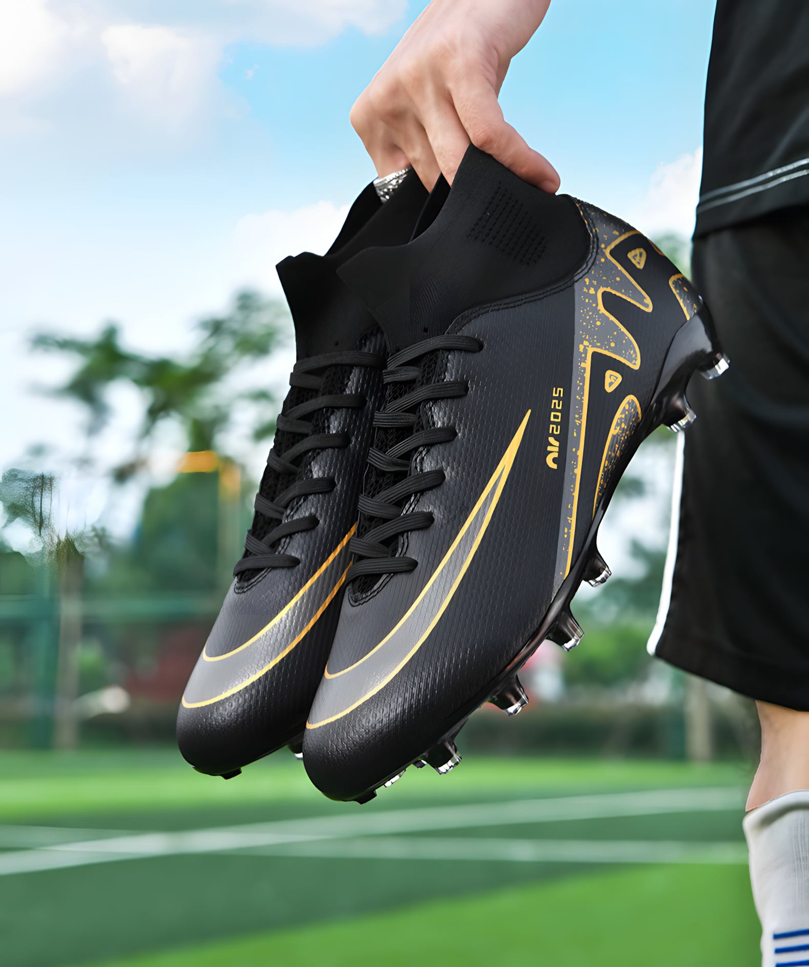 Бутсы, размер 34, черный/золотой