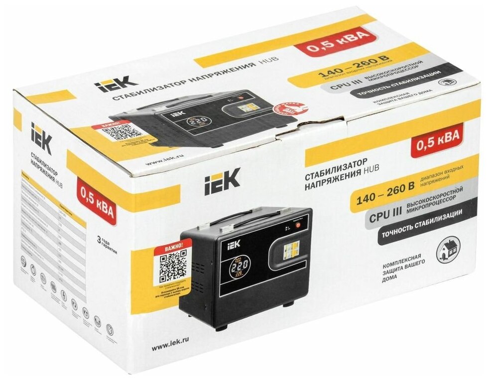 Стабилизатор напряжения однофазный IEK HUB 0.5кВА (IVS21-1-D05-13) черный