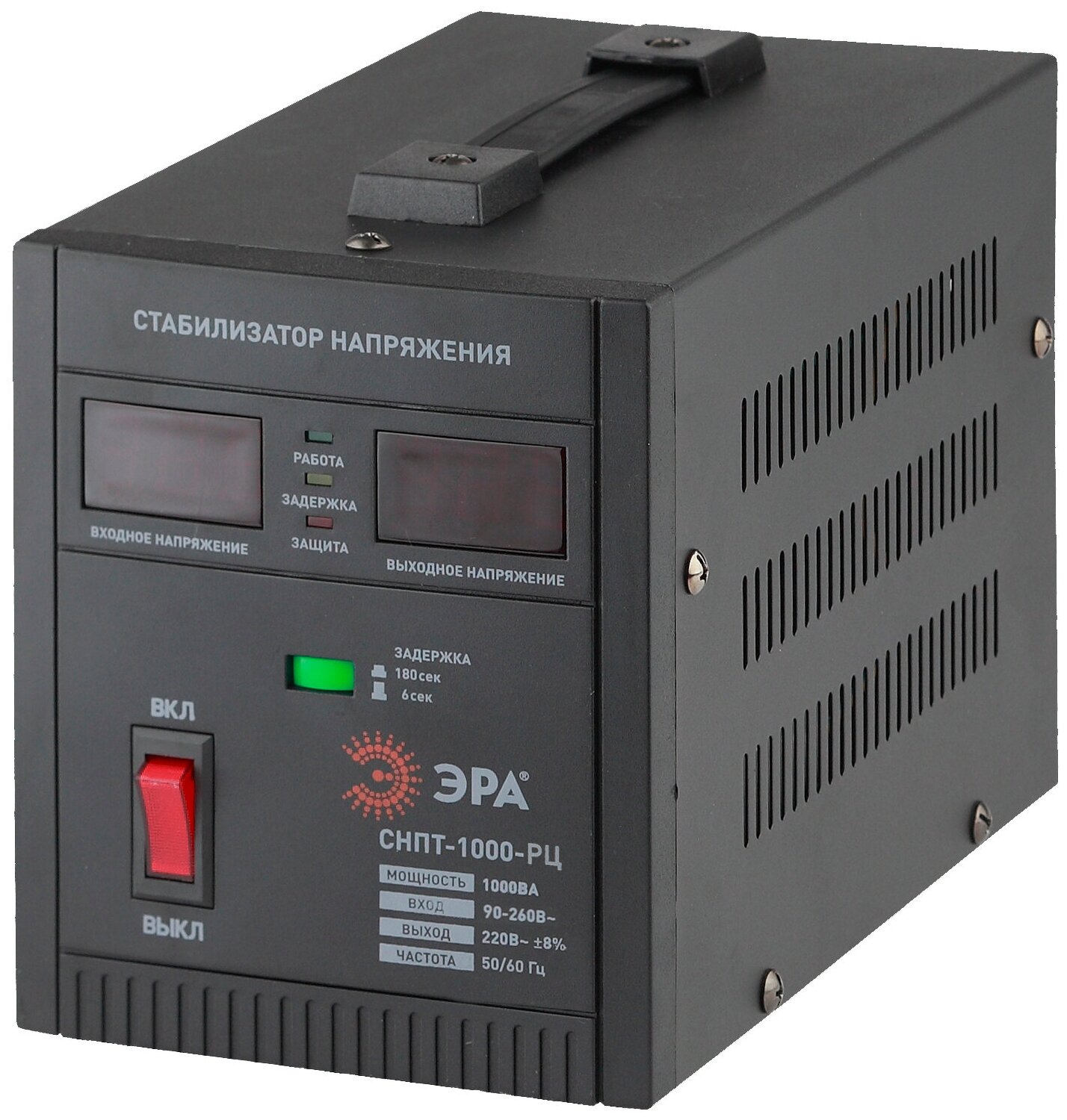 Стабилизатор напряжения ЭРА однофазный релейный переносной СНПТ-1000-РЦ, 1000ВА 90-260В, чёрный
