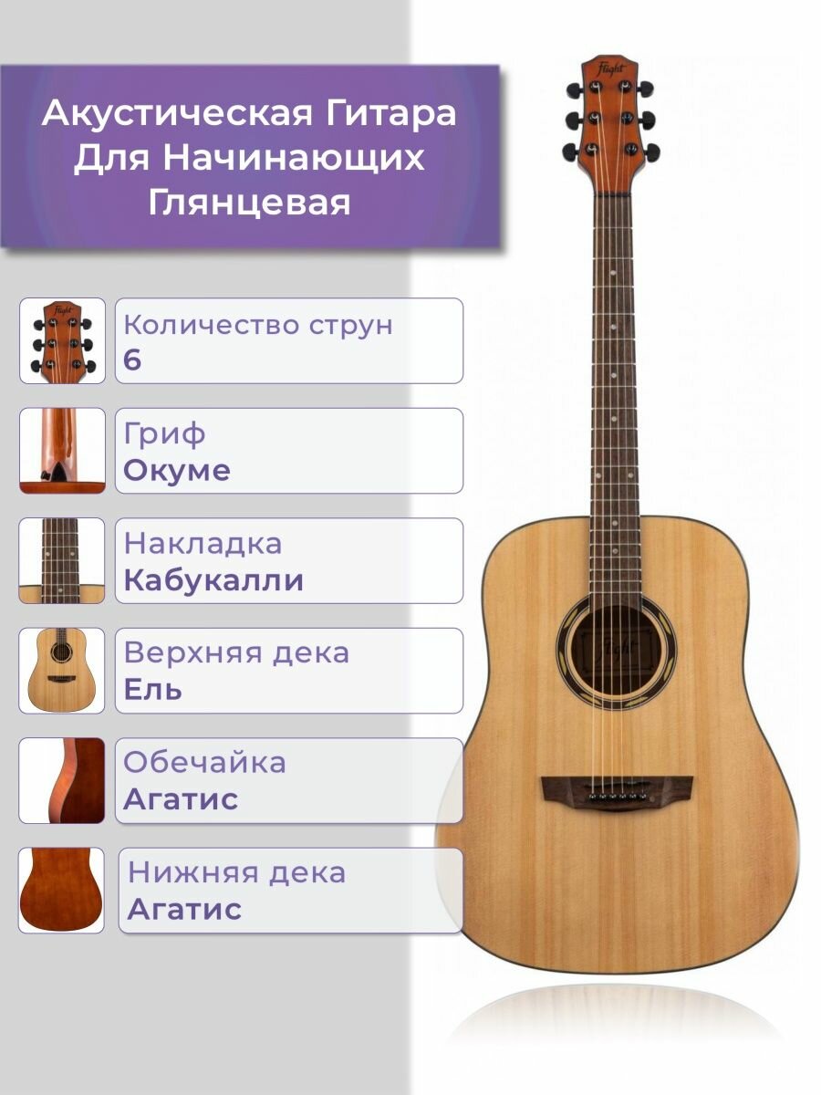 Акустическая гитара Flight D-130 NA интересное:
