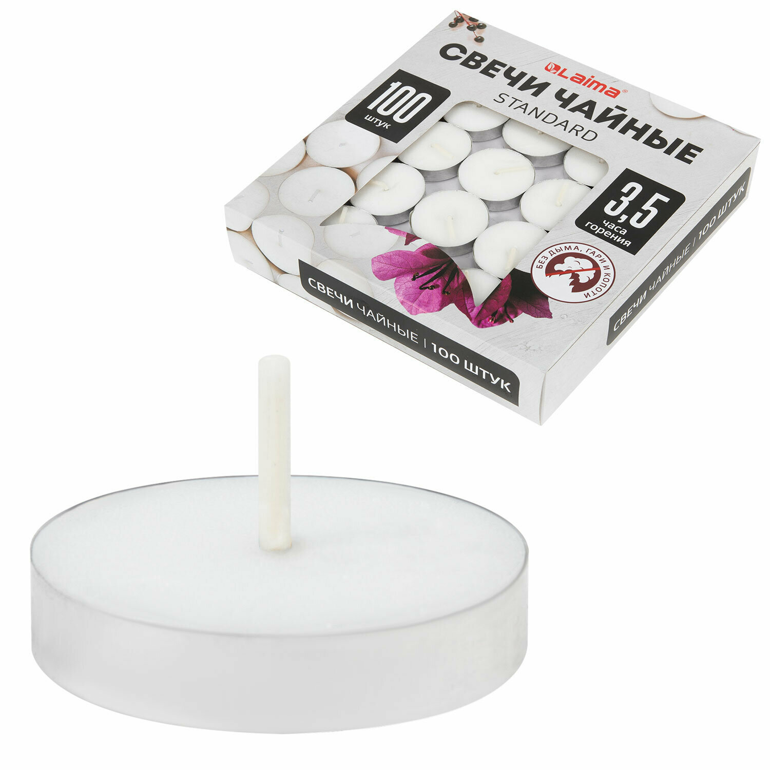 Свечи чайные Standard, подарочный набор 100 штук, до 3,5 часов горения, в гильзе, вес 9 г, Laima, 609198 интересное: