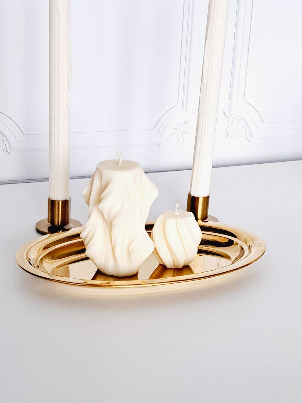 Купить Интерьерная большая свеча, Волна и шар, 12см и 6см, 2 шт, набор свечей подарочный, столбик