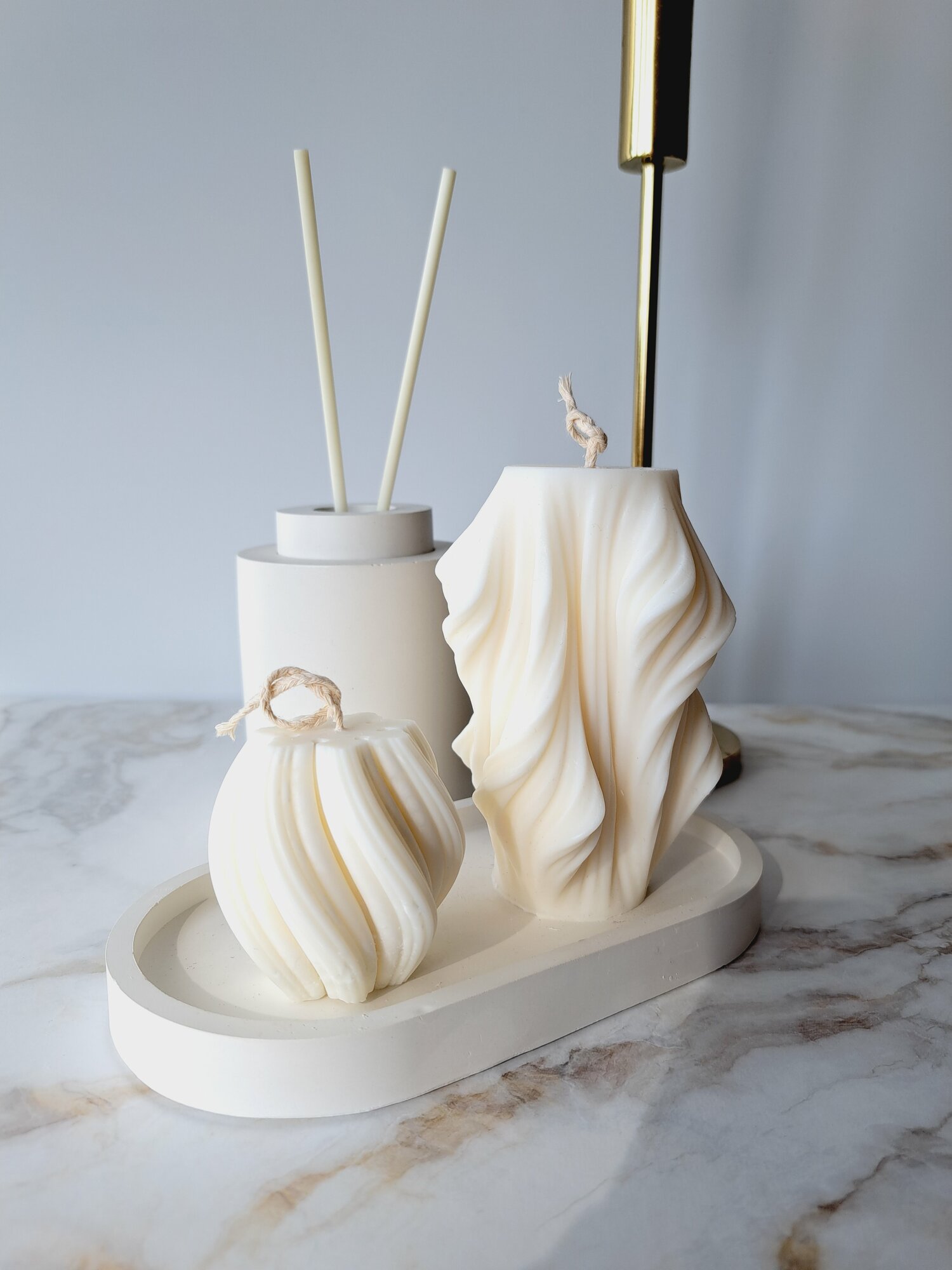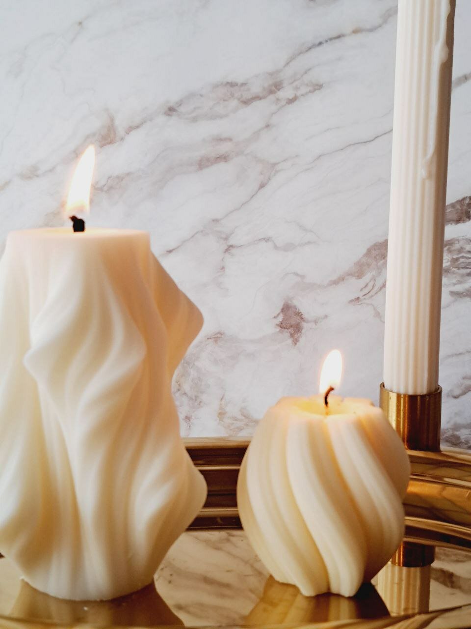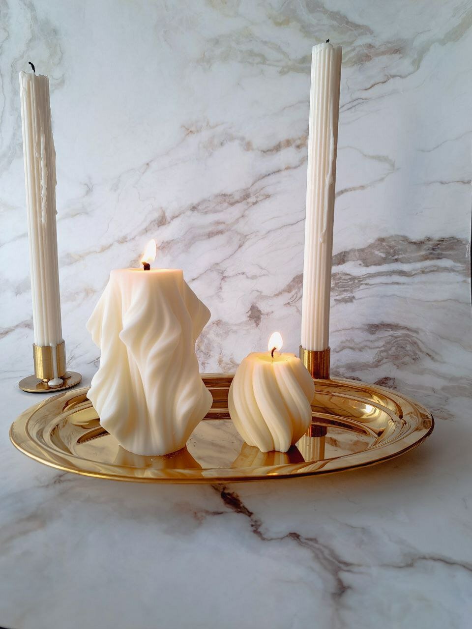 Интерьерная большая свеча, Волна и шар, 12см и 6см, 2 шт, набор свечей подарочный, столбик интересное: