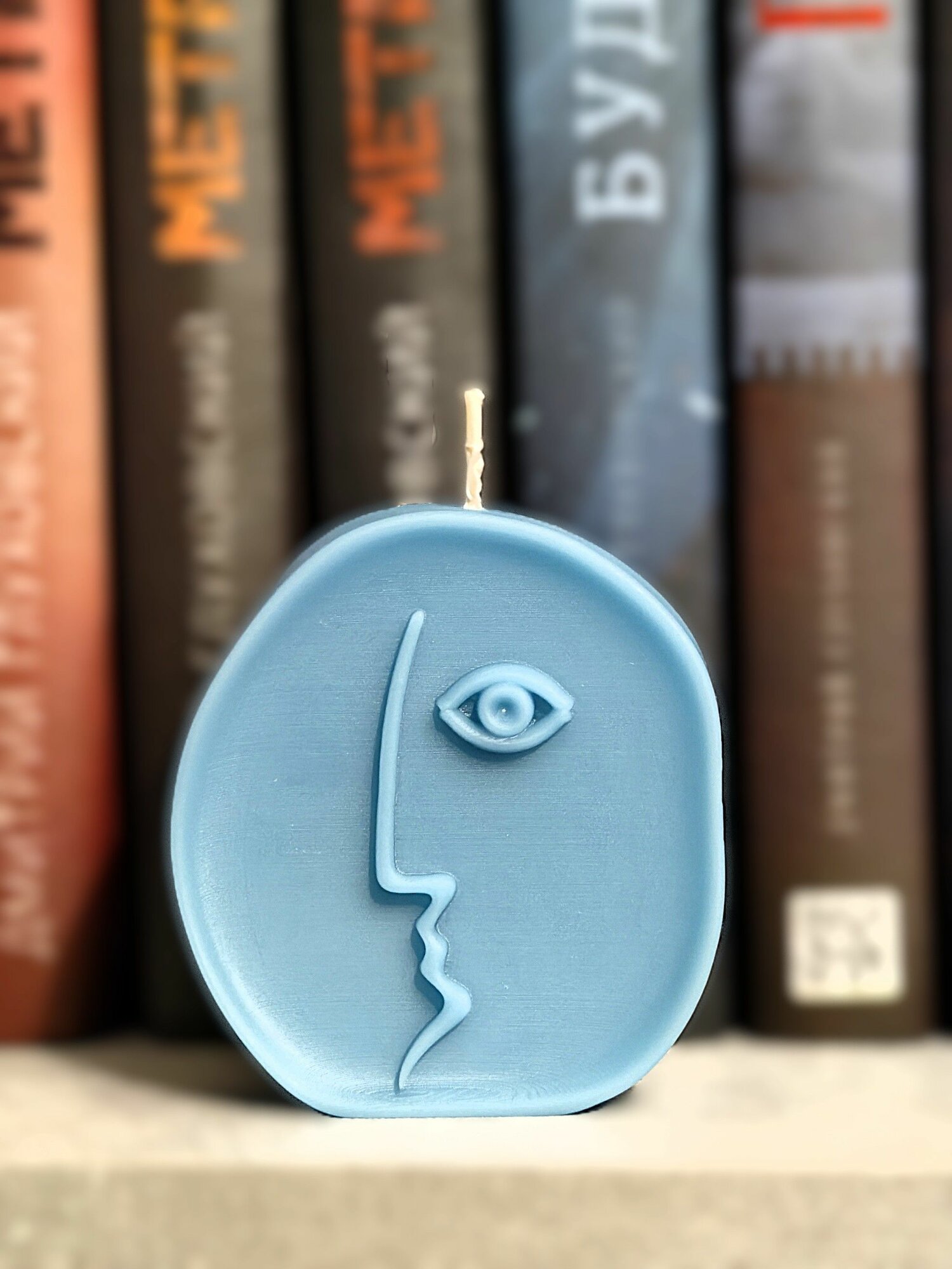 Купить Свеча интерьерная, фигурная "Абстрактное лицо", ароматическая, пчелиный воск, голубая