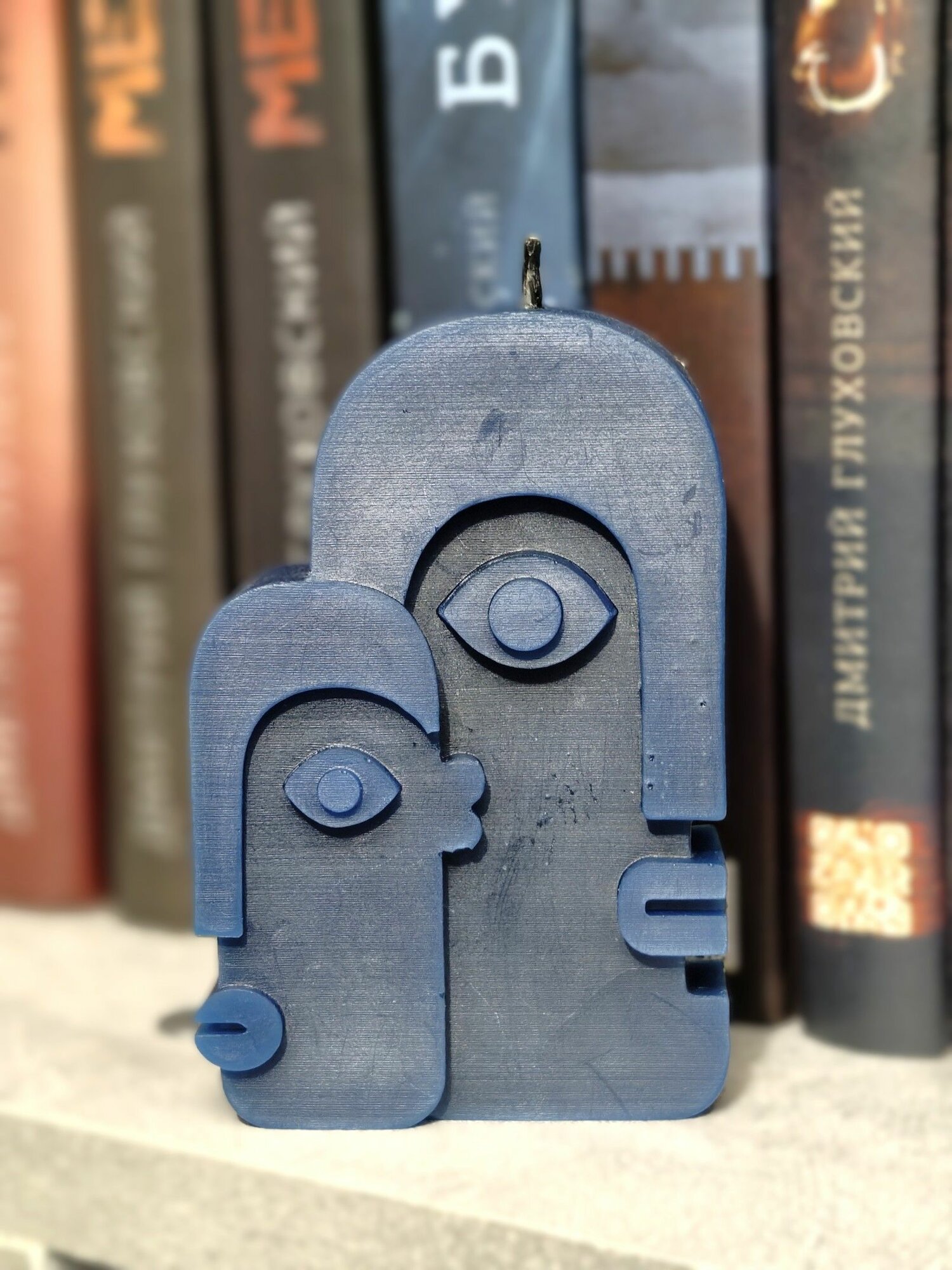 СохранитьСвеча "2 Лица", интерьерная, фигурная, пчелиный воск, ручная работа, синяя интересное: