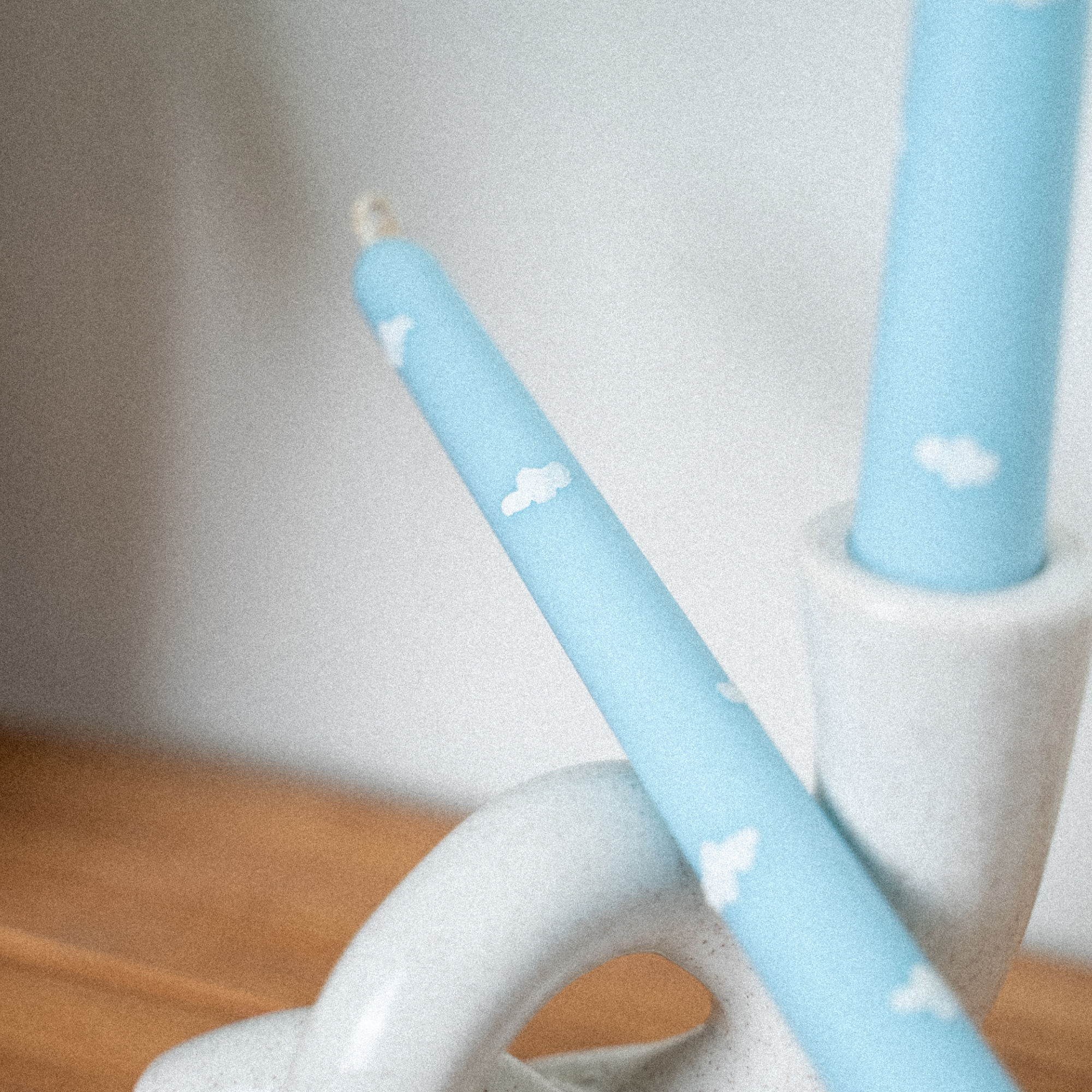 Купить "ICY" Столовые свечи голубые с росписью облака оливковый воск / набор 2 шт.