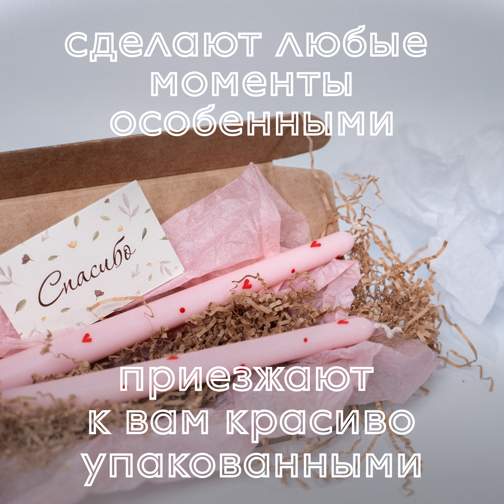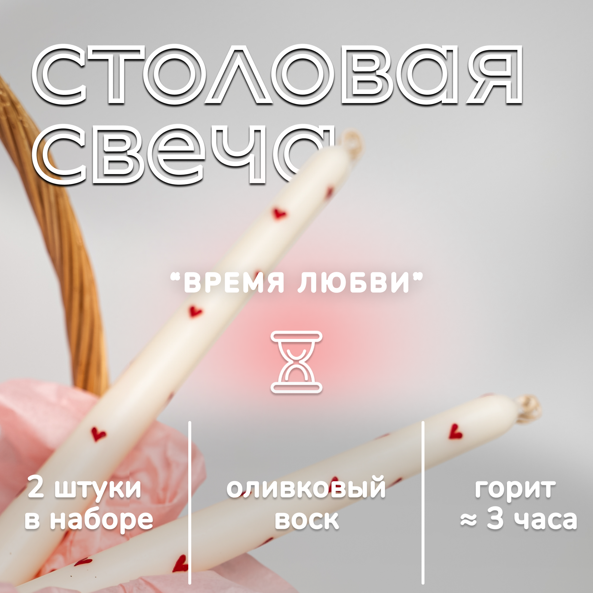 "ICY" Столовые розовые свечи с росписью сердечки оливковый воск / набор 2 шт.