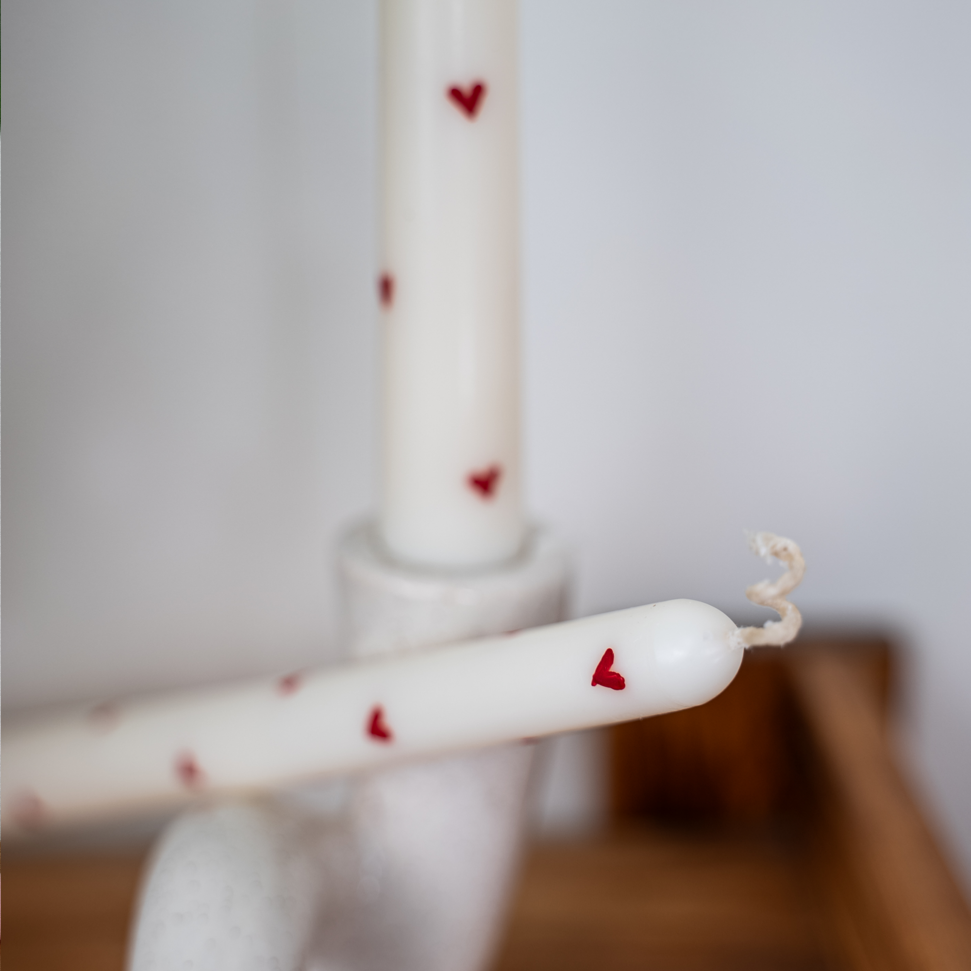 Купить "ICY" Столовые свечи с росписью сердечки оливковый воск / набор 2 шт.