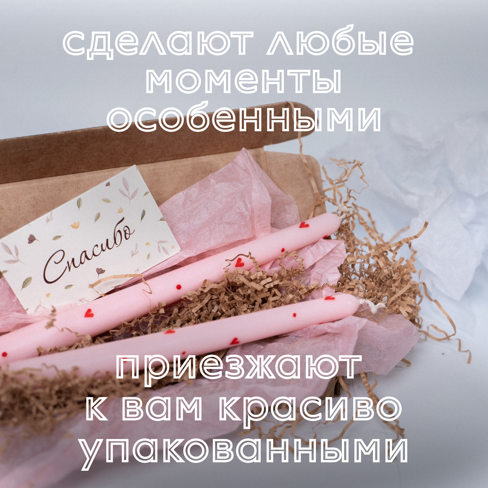 Купить "ICY" Столовые розовые свечи с росписью сердечки оливковый воск / набор 2 шт.