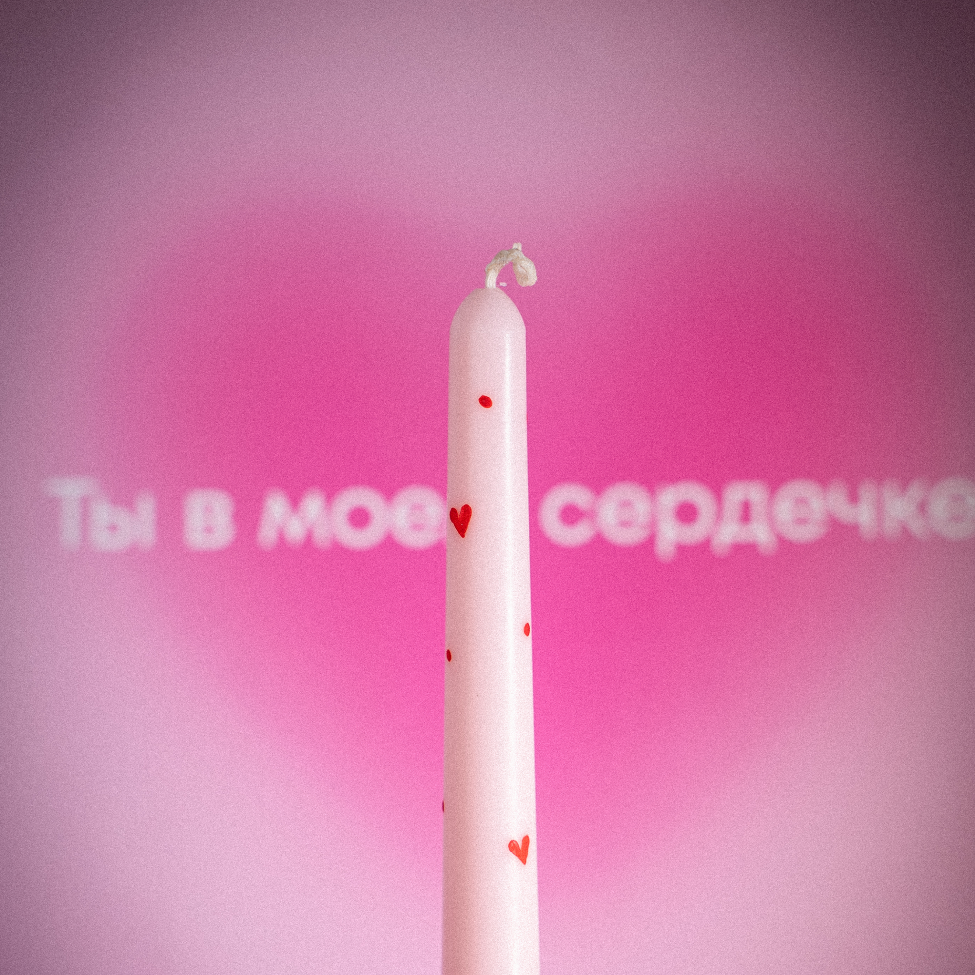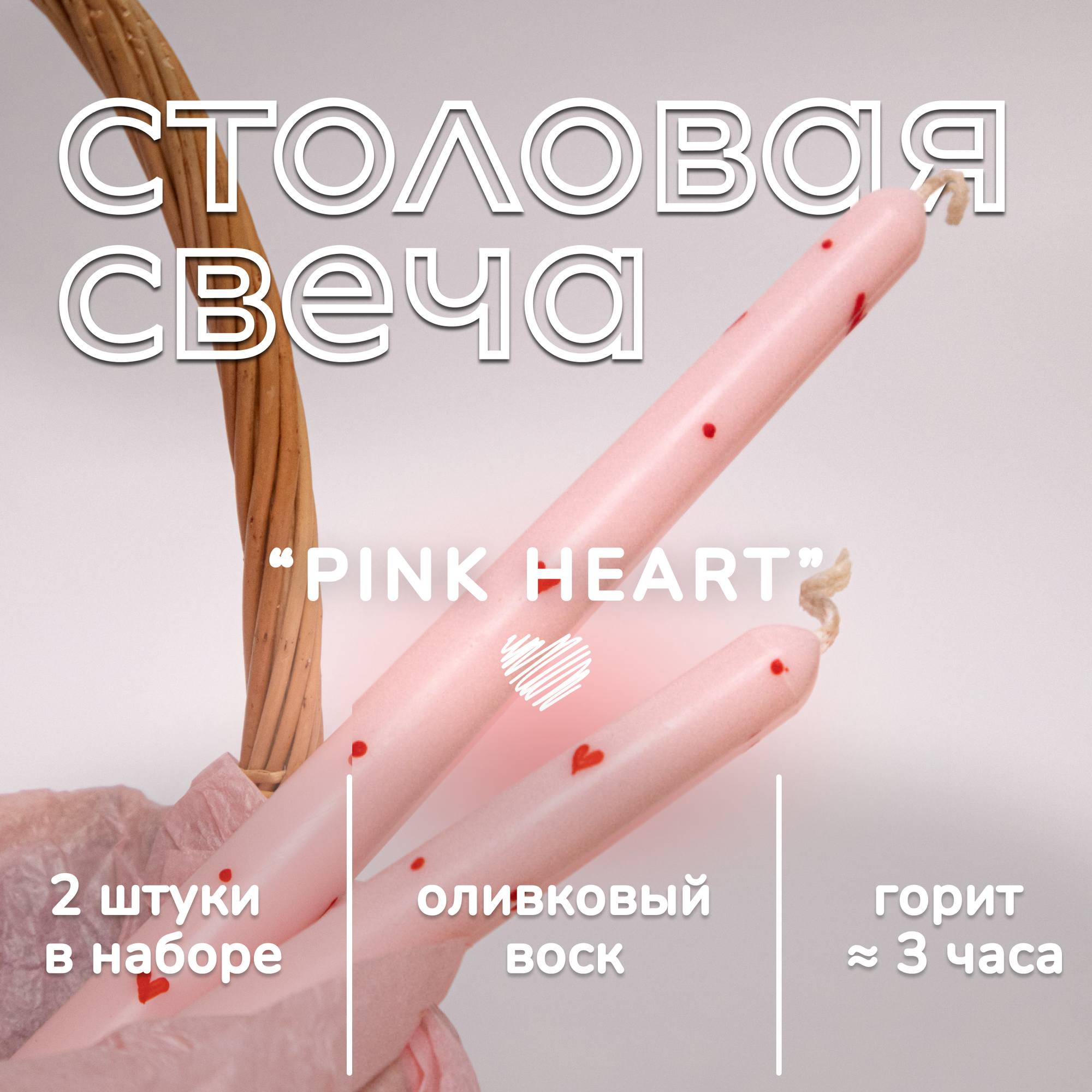 "ICY" Столовые розовые свечи с росписью сердечки оливковый воск / набор 2 шт. интересное: