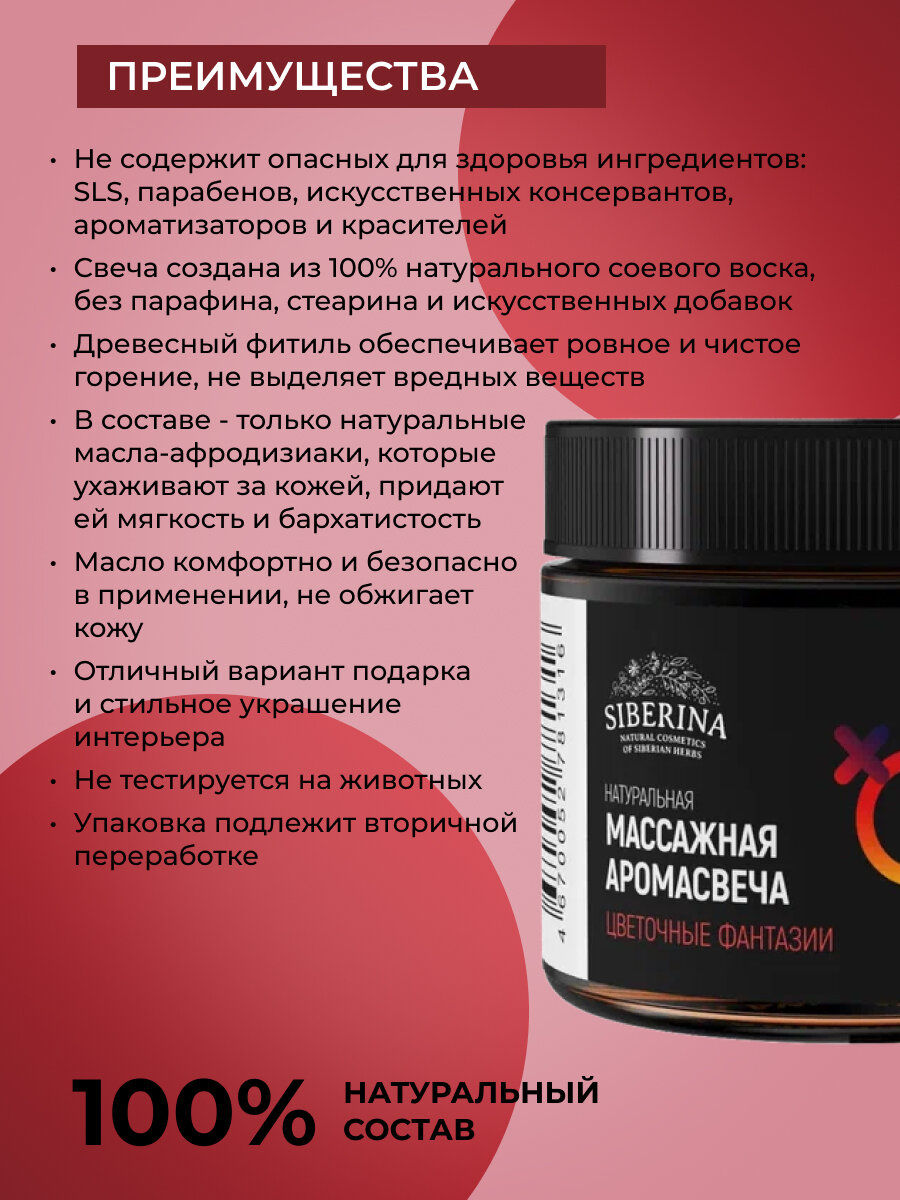 Siberina Натуральная массажная аромасвеча с афродизиаками "Цветочные фантазии," 60 мл интересное: