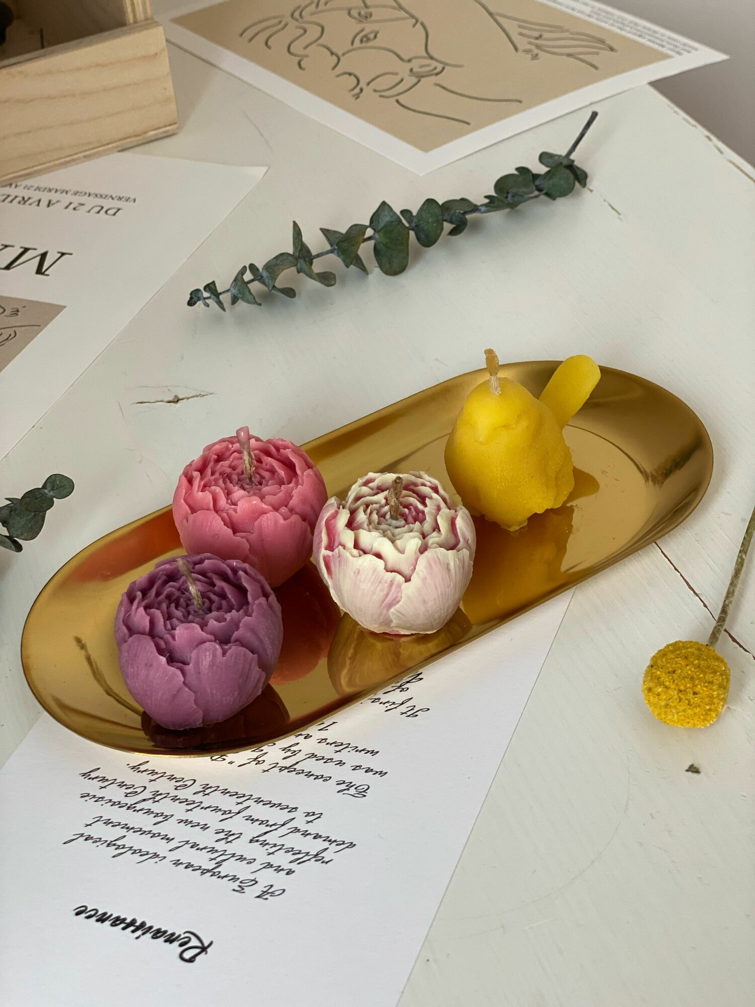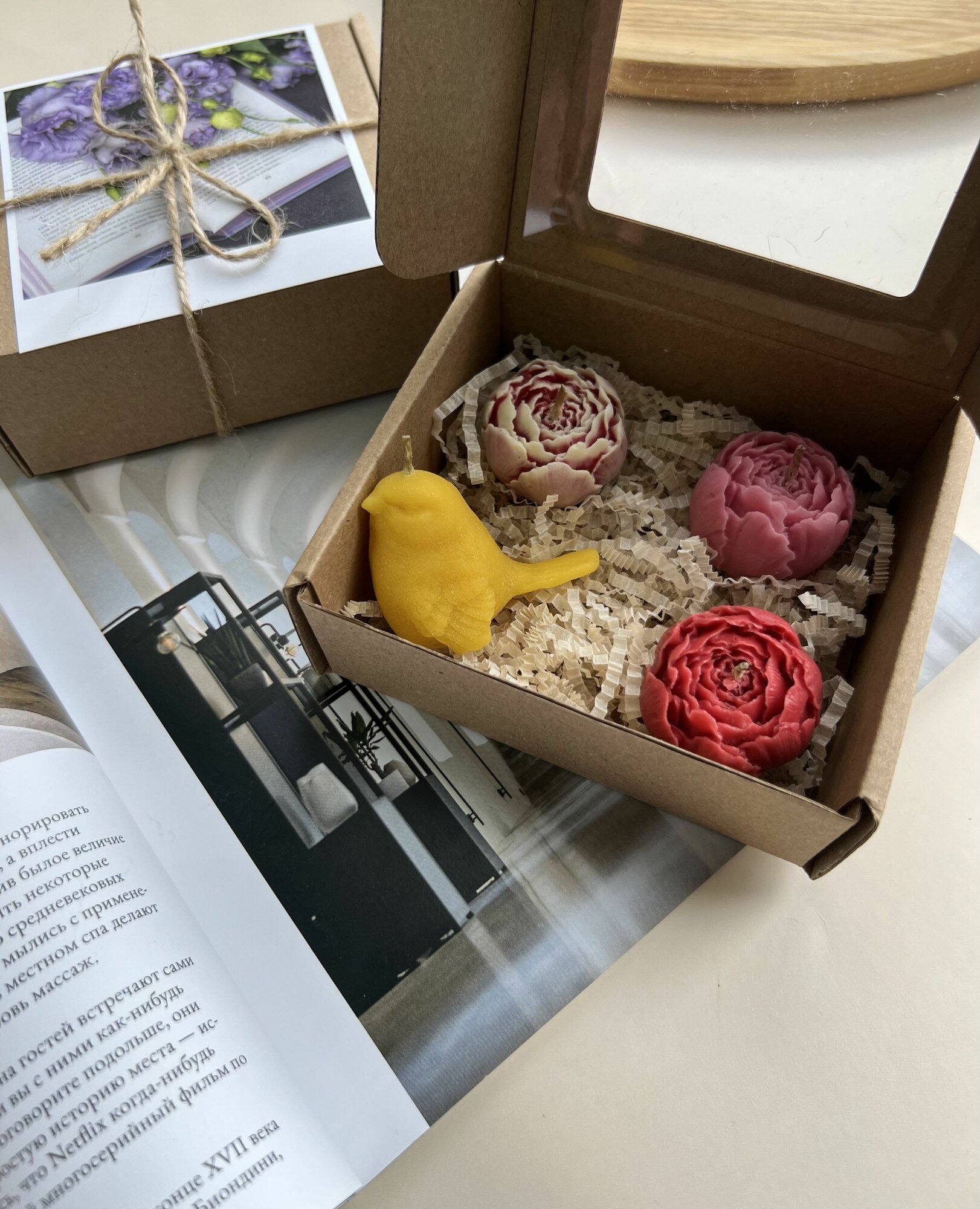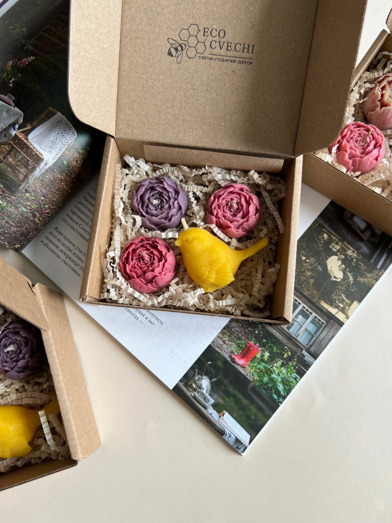 Подарочный набор свечей " Пионы ", 3шт. для декора / Декоративные свечи из натурального пчелиного воска