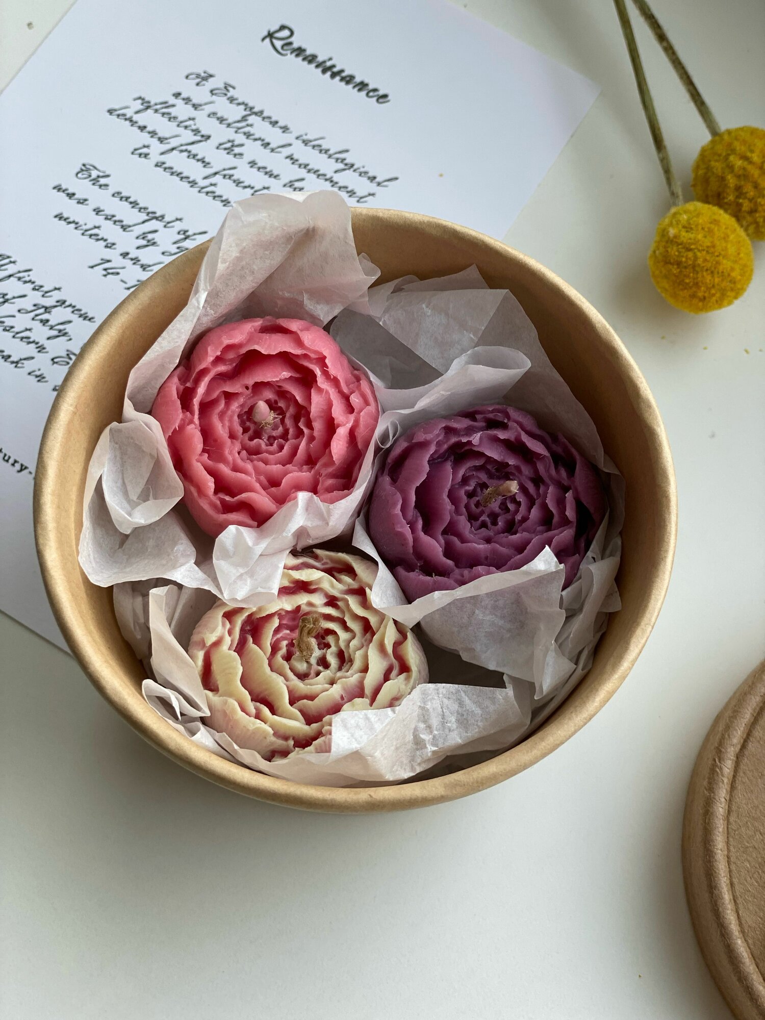 Подарочный набор свечей " Пионы ", 3шт. для декора / Декоративные свечи из натурального пчелиного воска интересное: