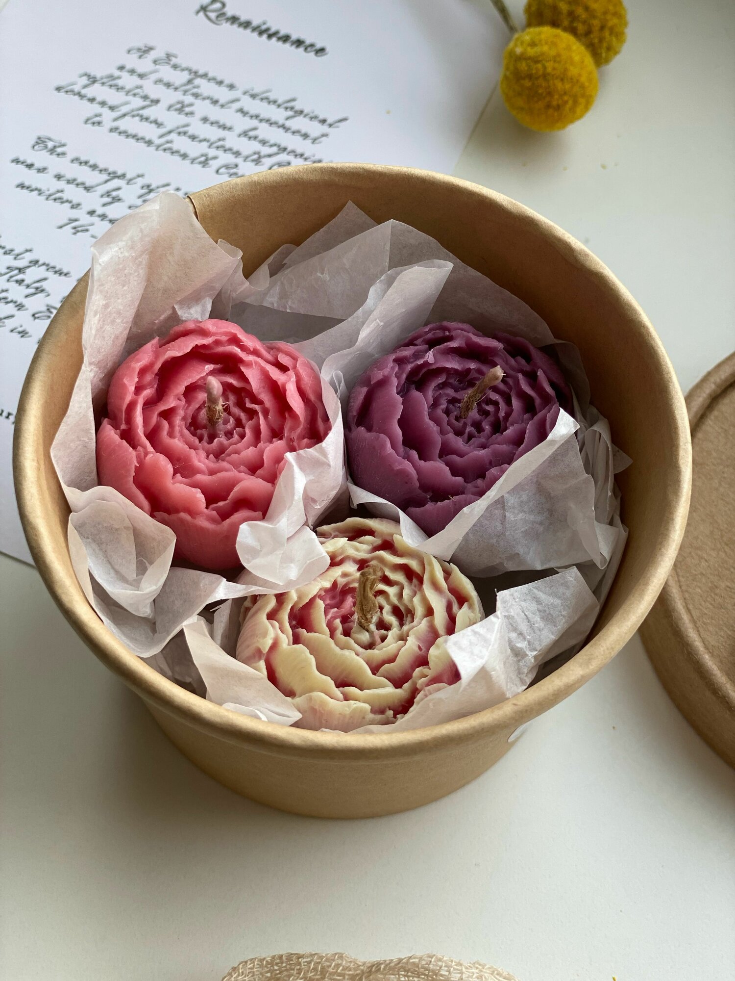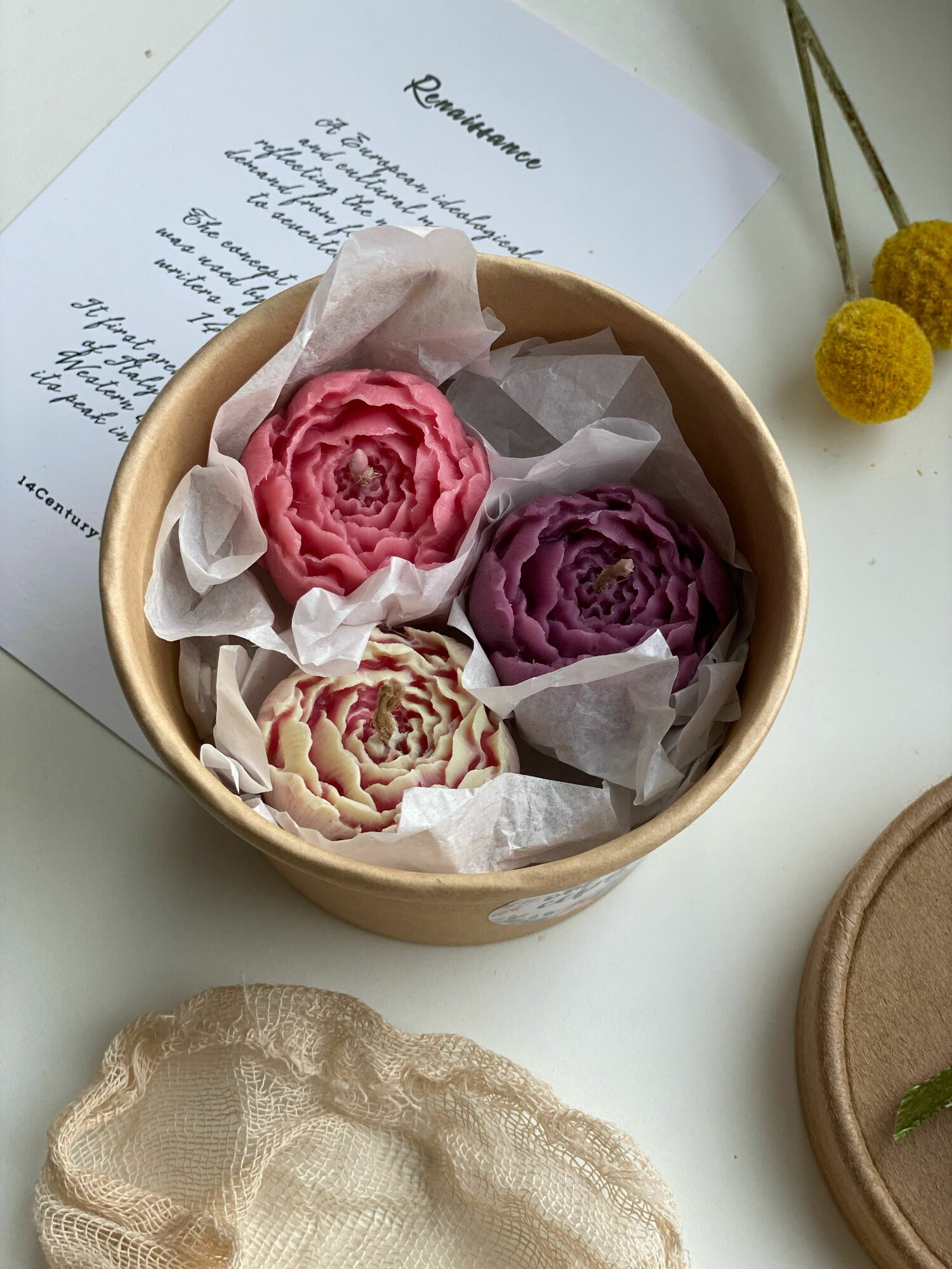 Купить Подарочный набор свечей " Пионы ", 3шт. для декора / Декоративные свечи из натурального пчелиного воска